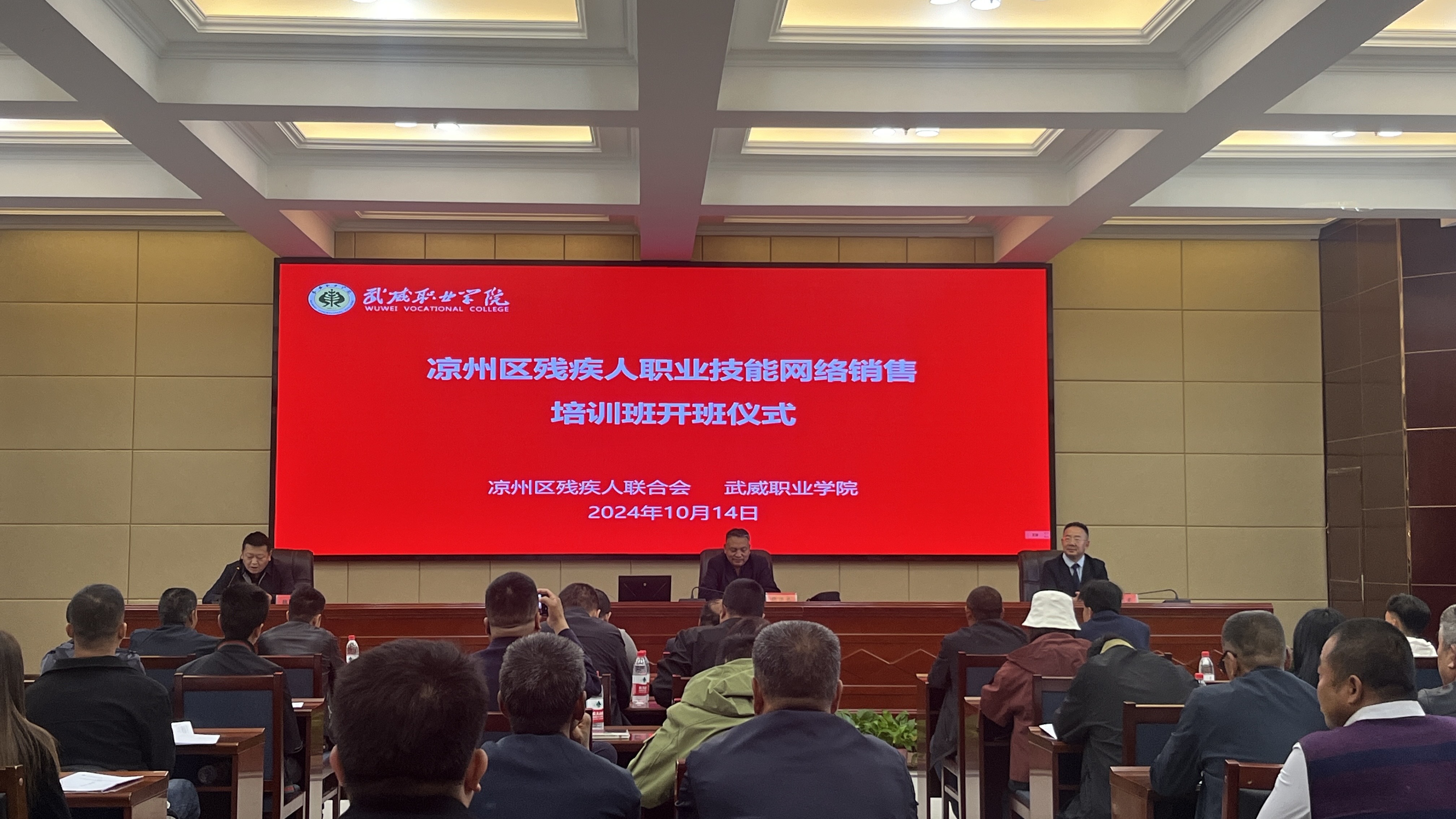 10月14日下午,由涼州區(qū)殘疾人聯(lián)合會主辦,我校承辦的涼州區(qū)殘疾人職業(yè)技能網(wǎng)絡(luò)銷售培訓(xùn)班順利開班,來自涼州區(qū)的70名殘疾人學(xué)員參加本次培訓(xùn)學(xué)習(xí)。涼州區(qū)殘聯(lián)主任張德龍、學(xué)校教學(xué)督導(dǎo)室金玉龍老師出席了開班儀式。藥學(xué)院魏曙光老師主持了開班儀式。