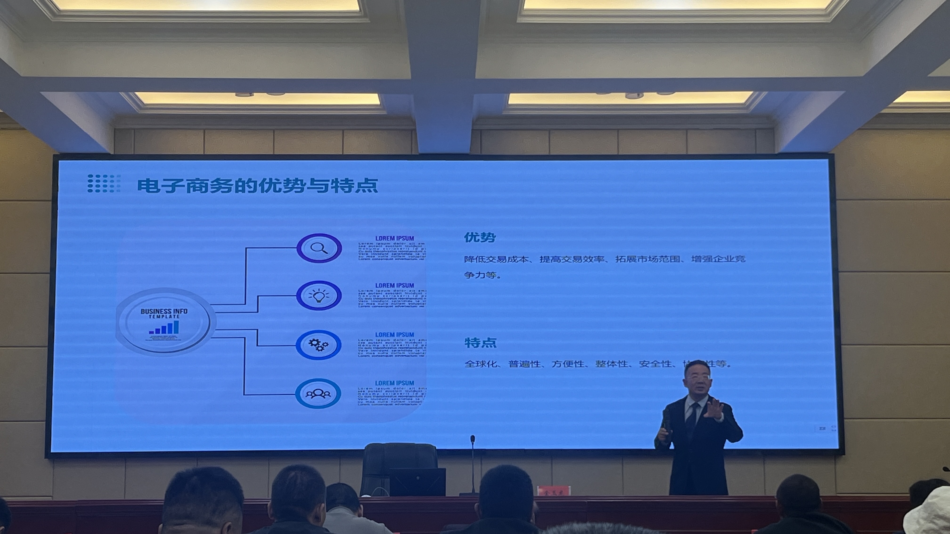 開班式后金玉龍老師做了電子商務(wù)發(fā)展、法律及經(jīng)營風(fēng)險(xiǎn)培訓(xùn)講座。