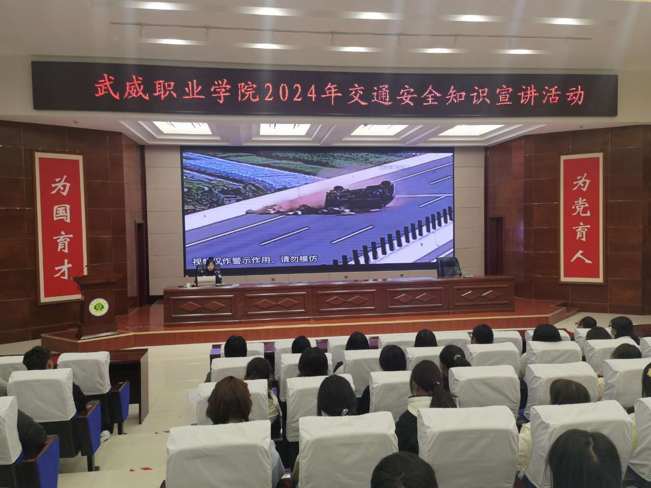 為進(jìn)一步推進(jìn)平安校園建設(shè),增強(qiáng)師生的交通安全意識(shí),預(yù)防和減少交通事故的發(fā)生。10月24日,學(xué)校邀請(qǐng)武威市公安局交警支隊(duì)王穎警官來學(xué)校開展交通安全知識(shí)宣講活動(dòng),為師生們帶來了一堂深刻的交通安全警示課。宣講活動(dòng)由安全保衛(wèi)處處長(zhǎng)李欣主持。