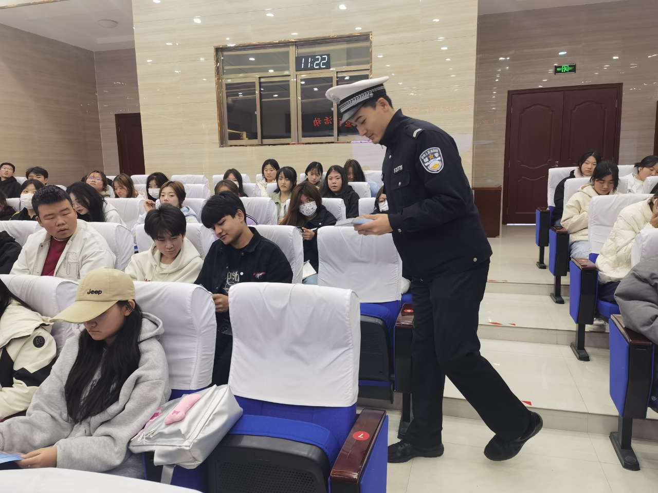 宣講中,王警官?gòu)牟叫?、騎車、乘車、駕車等師生日常出行方式需要注意的交通安全事項(xiàng)出發(fā),生動(dòng)而詳盡地向同學(xué)們講授各種實(shí)用的交通安全知識(shí)。通過案例分析、警示視頻播放等方式,講解“開門殺”“鬼探頭”“酒駕”“不佩戴安全頭盔”等安全隱患的危害,支招“荷式開門法”等正確下車操作方式化解“開門殺”等安全隱患,讓同學(xué)們?cè)谡鎸?shí)交通事故警示視頻中直觀地認(rèn)識(shí)到交通事故的慘烈性、危害性,使同學(xué)們深刻認(rèn)識(shí)到不遵守交通規(guī)則的嚴(yán)重后果。最后,通過發(fā)放宣傳資料并結(jié)合學(xué)生出行特點(diǎn)及學(xué)校周邊道路交通環(huán)境等實(shí)際情況,讓學(xué)生注意“視線盲區(qū)”等危險(xiǎn),讓學(xué)生銘記“寧等三分,不搶一秒”文明禮讓通行警語。