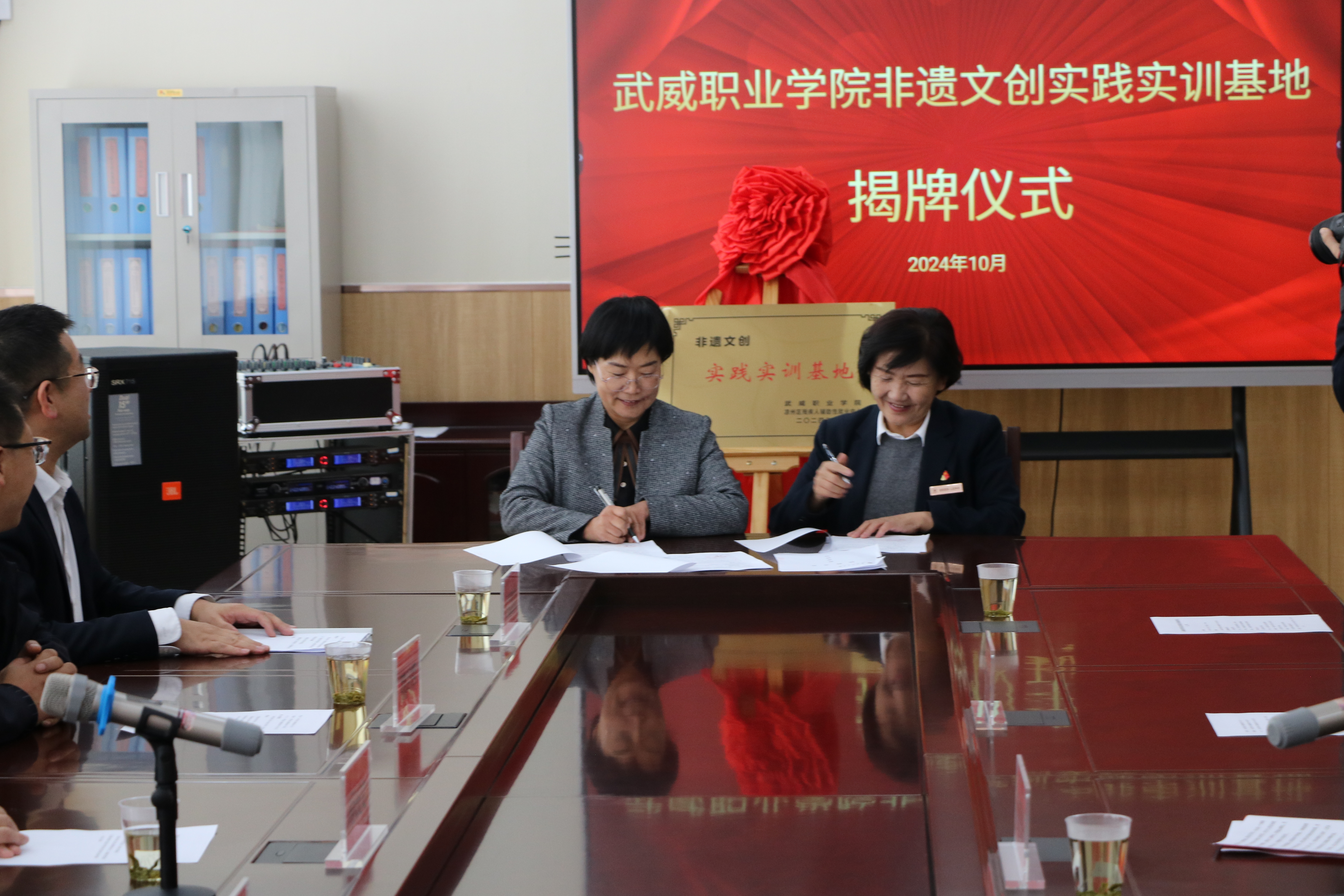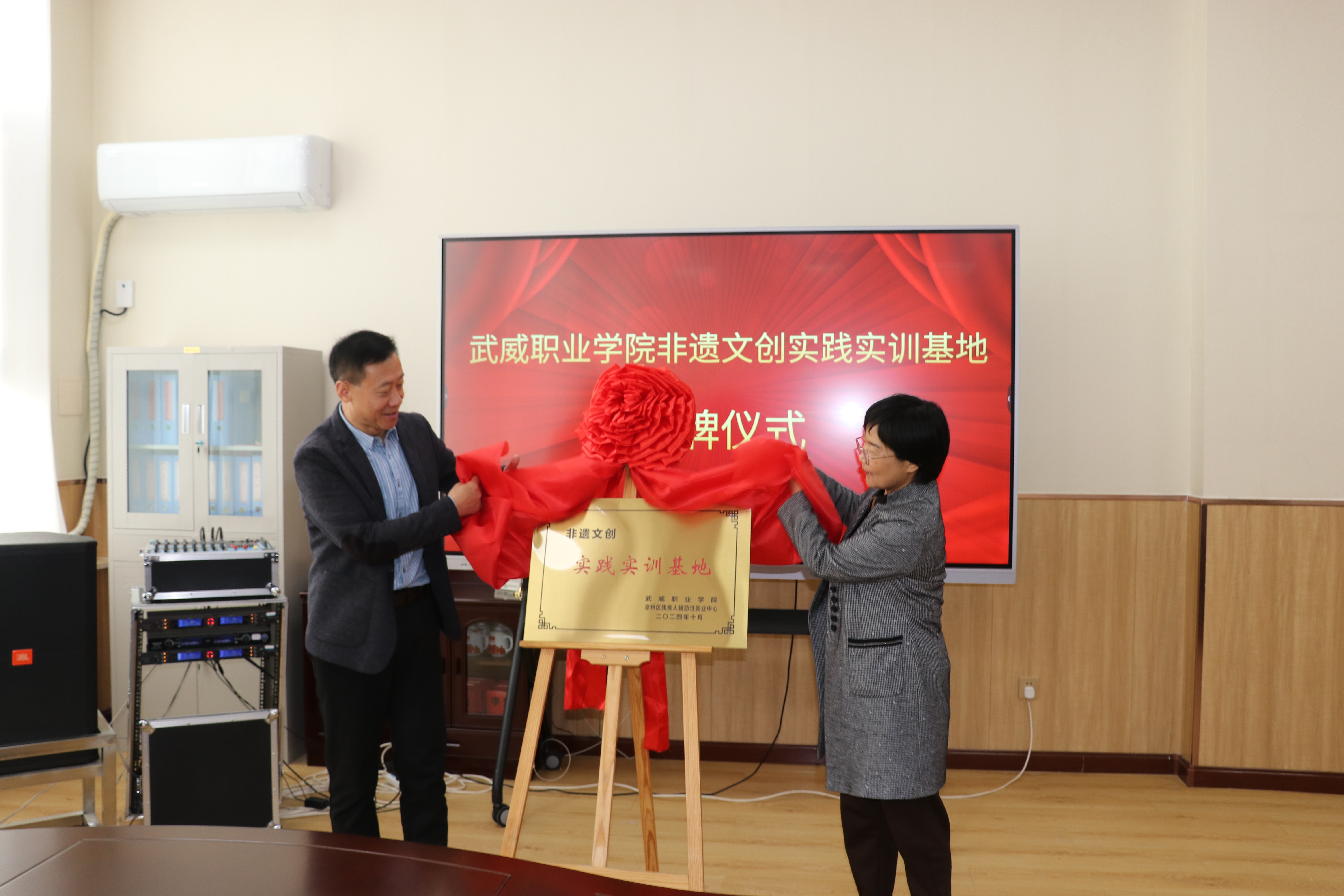 會上,武威市殘疾人聯(lián)合會副理事長柯長文,武威職業(yè)學(xué)院黨委委員、副校長何毅為“非遺文創(chuàng)實訓(xùn)實踐基地”揭牌。