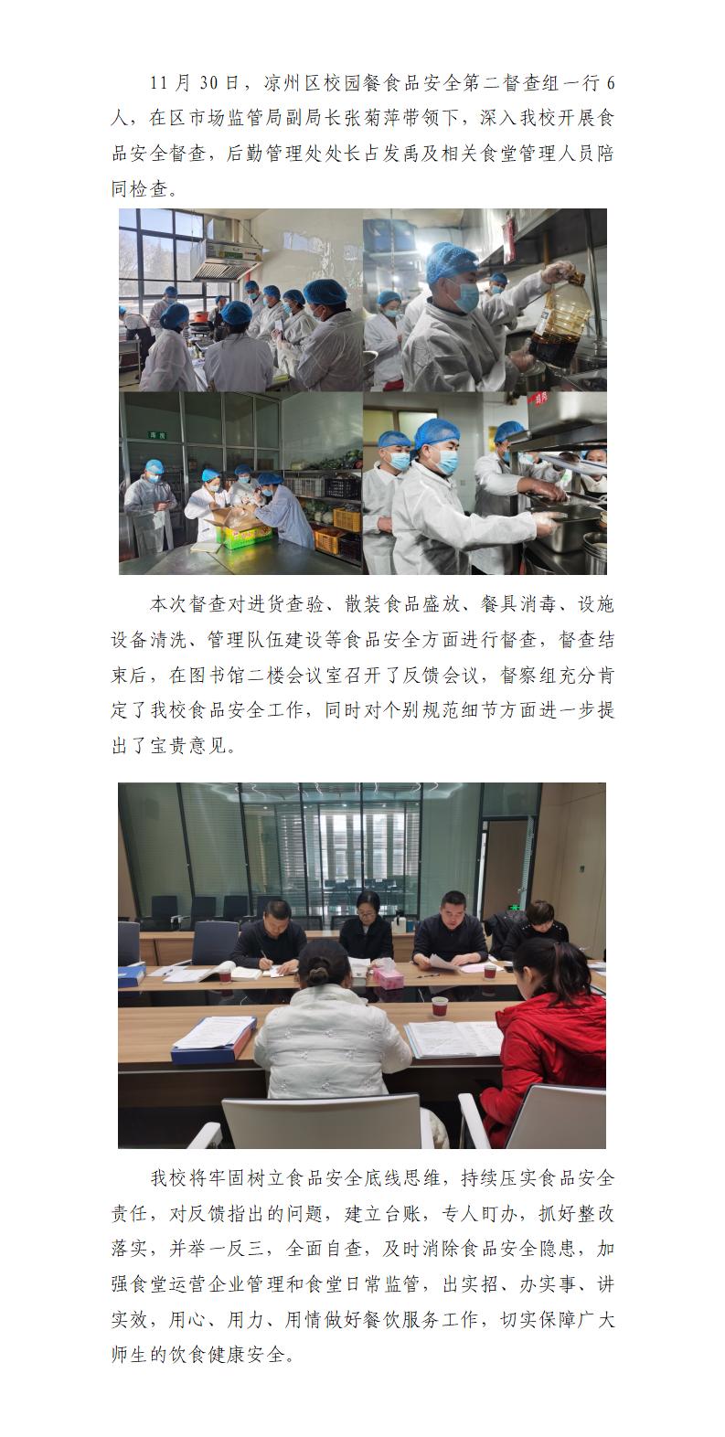 涼州區(qū)校園餐食品安全第二督查組來我校開展食品安全專項(xiàng)督查