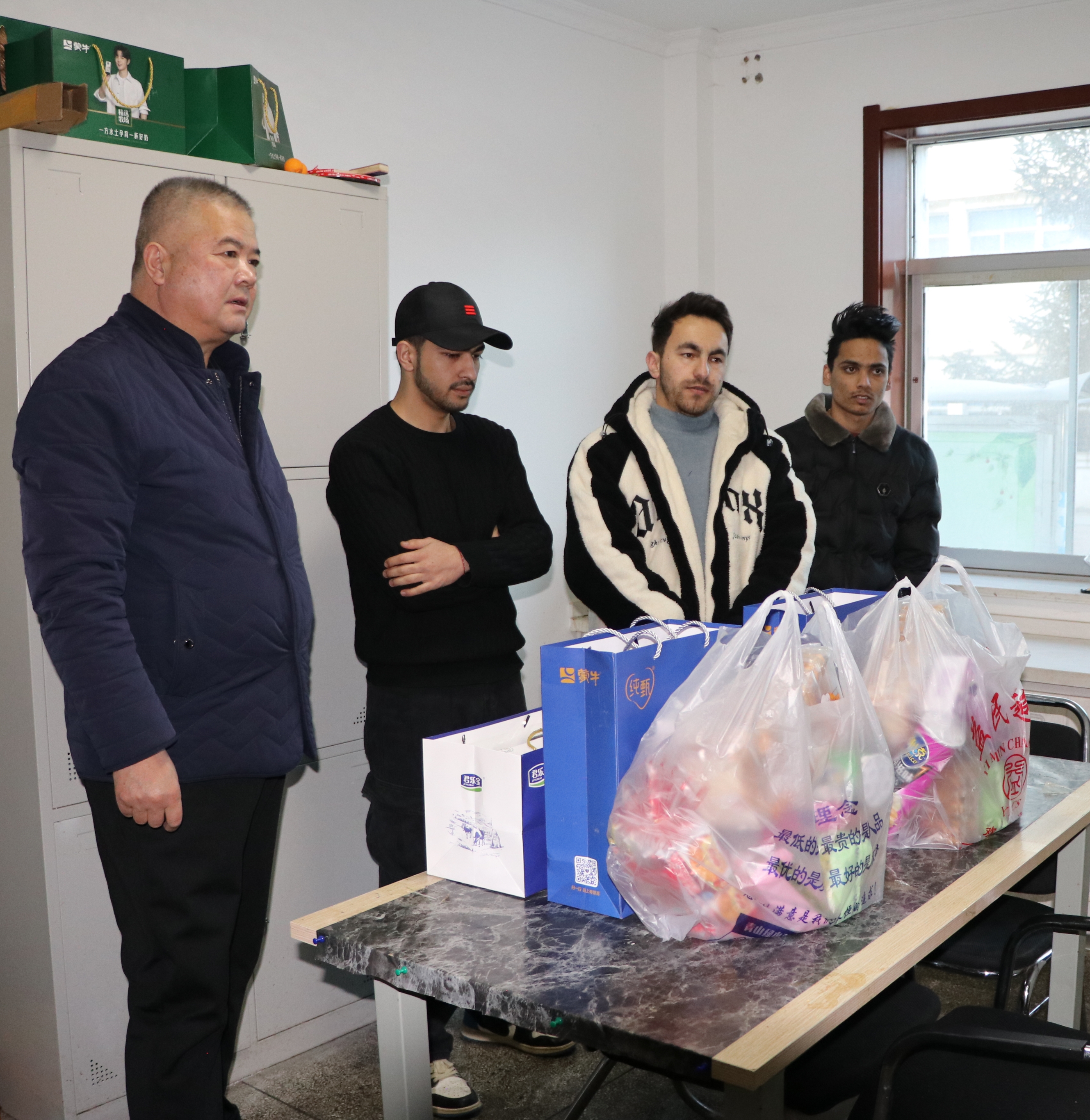 為深入了解來華留學(xué)生的學(xué)習(xí)和生活狀況,全面做好留學(xué)生的假期安全教育和服務(wù)保障工作,12月30日下午,在2025年新年來臨之際,黨委委員、副校長王守云、學(xué)生工作部部長張世亮、副部長王鵬、保衛(wèi)處副處長康興奎以及國際合作交流處全體工作人員走進留學(xué)生公寓,給留學(xué)生們送去學(xué)校的關(guān)懷和新年的祝福。