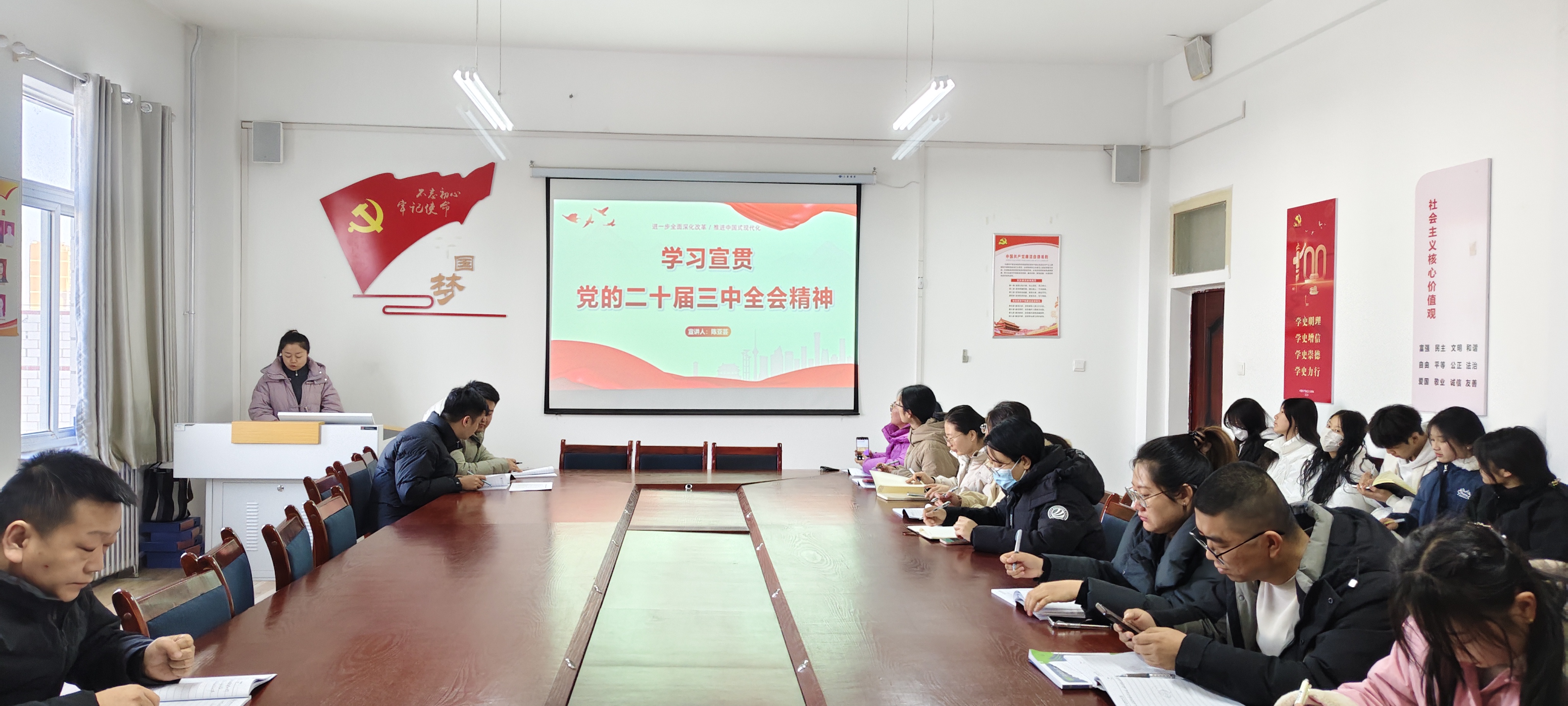 為全面深入學習領(lǐng)會黨的二十屆三中全會精神,深化教育教學改革,推進教育高質(zhì)量發(fā)展,12月19日,學校宣講組成員、馬克思主義學院教師陳亞蕓為藥學院開展黨的二十屆三中全會精神宣講,藥學院全體黨員、入黨積極分子共42人參加了宣講會。