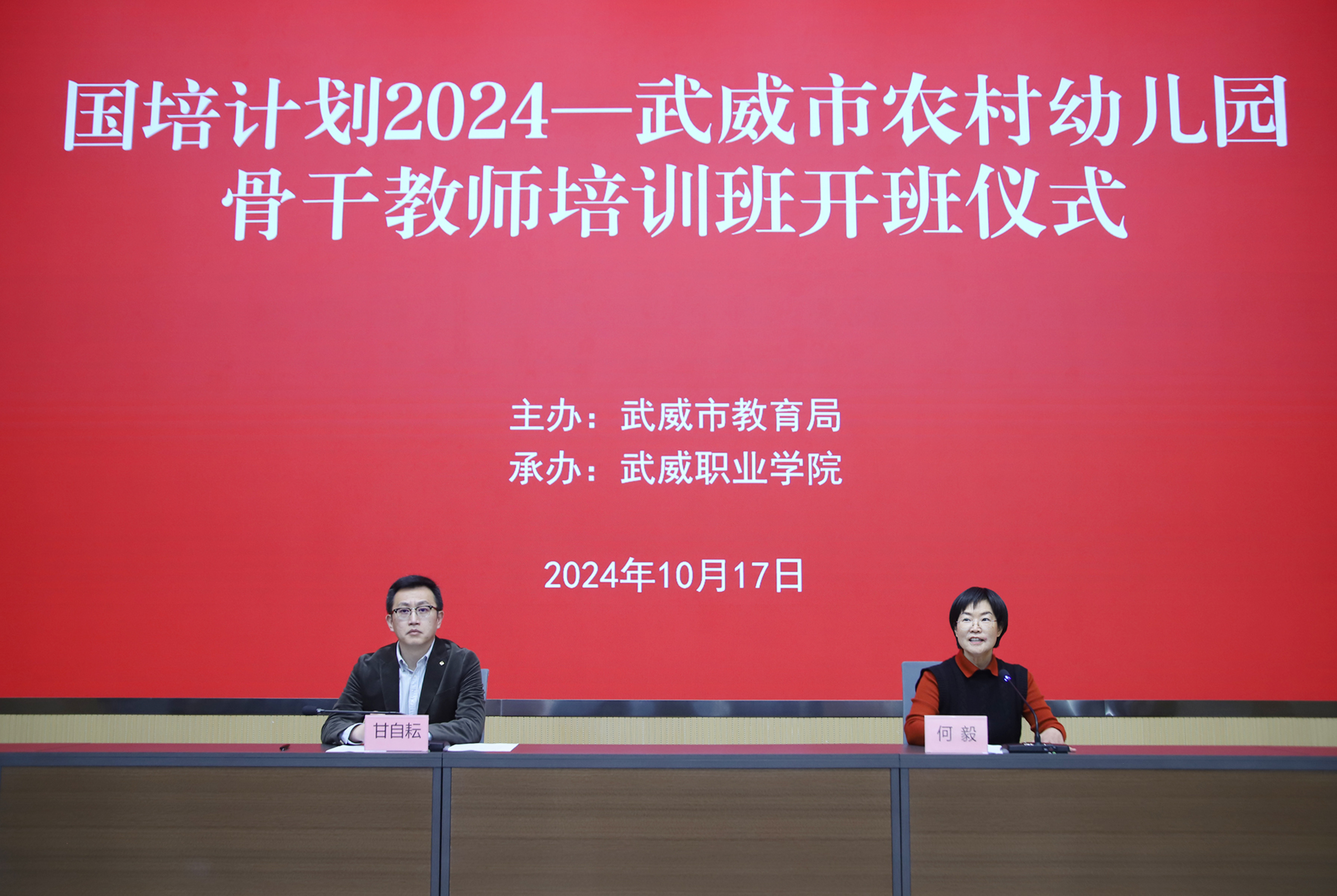 10月17日上午,由武威市教育局主辦,我校承辦的“國(guó)培計(jì)劃(2024)”—武威市農(nóng)村幼兒園骨干教師培訓(xùn)班在能源科技樓一樓報(bào)告廳順利開(kāi)班,來(lái)自我市各農(nóng)村幼兒園的80名骨干教師參加培訓(xùn)。武威市教育局黨組成員、副局長(zhǎng)甘自耘出席開(kāi)班儀式。學(xué)校黨委委員、副校長(zhǎng)何毅主持開(kāi)班儀式。