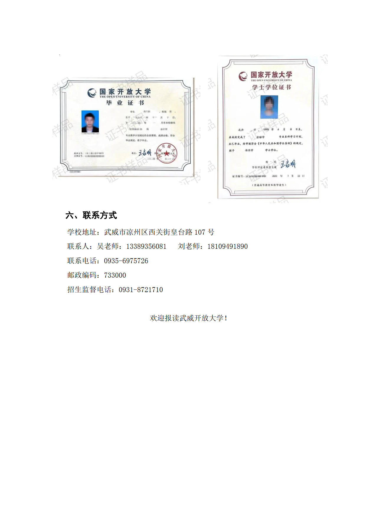 武威開放大學2025年招生簡章
