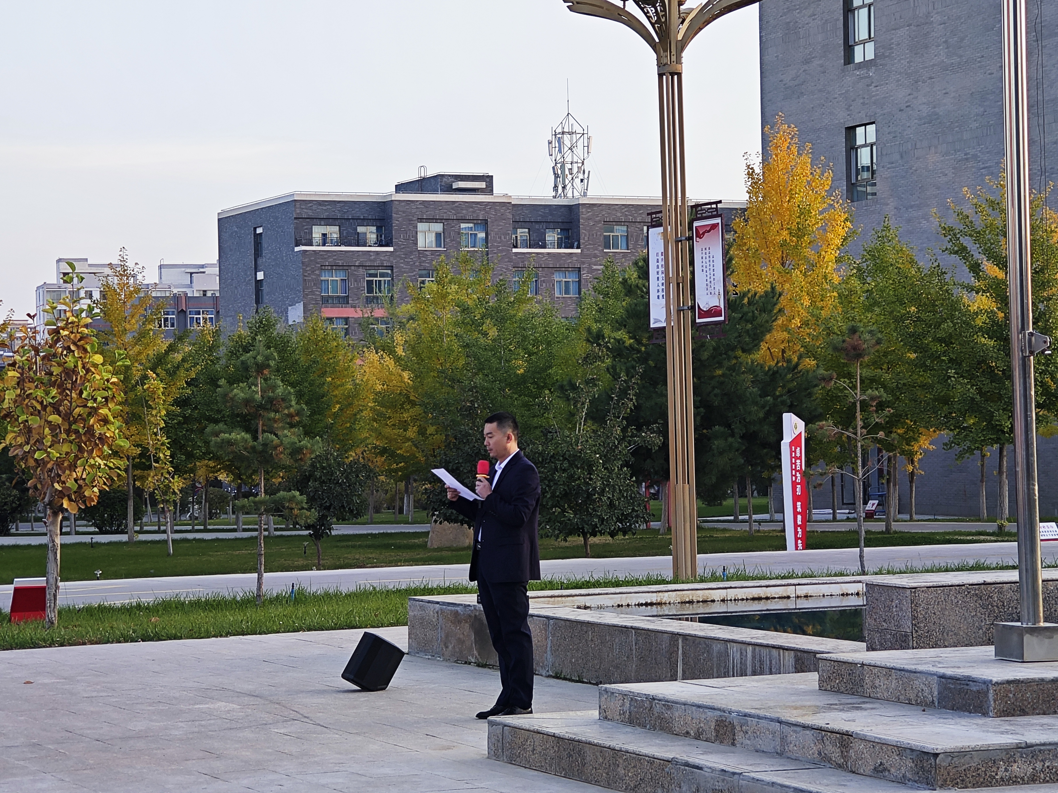 10月14日,信息技術(shù)學(xué)院在圖書館廣場(chǎng)舉行升國(guó)旗儀式。學(xué)院黨總支書記史子新及全體師生參加。