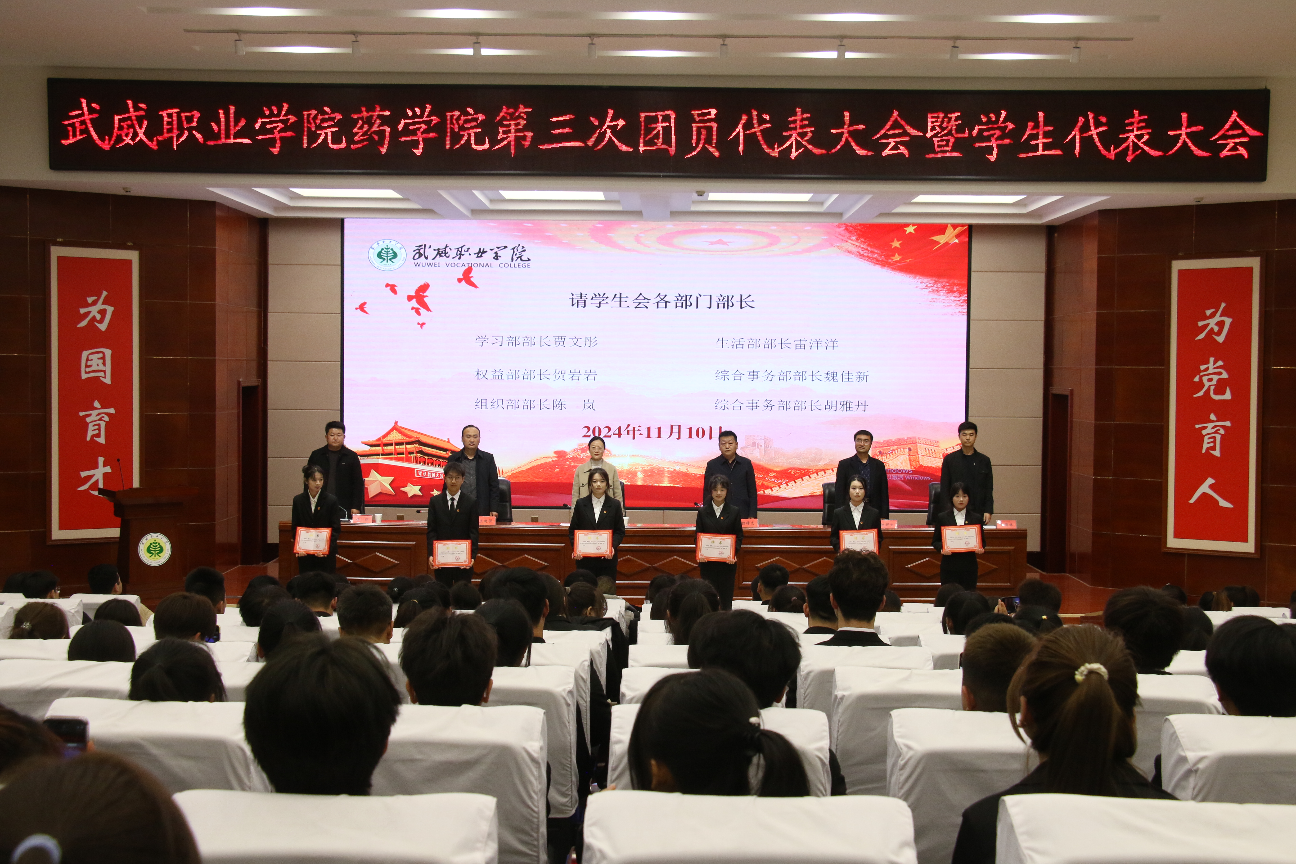 魏曙光宣讀了第三屆團(tuán)委委員名單和學(xué)生會主席團(tuán)成員名單。參會老師為新一屆團(tuán)委委員和學(xué)生會主席團(tuán)成員頒發(fā)了聘書。