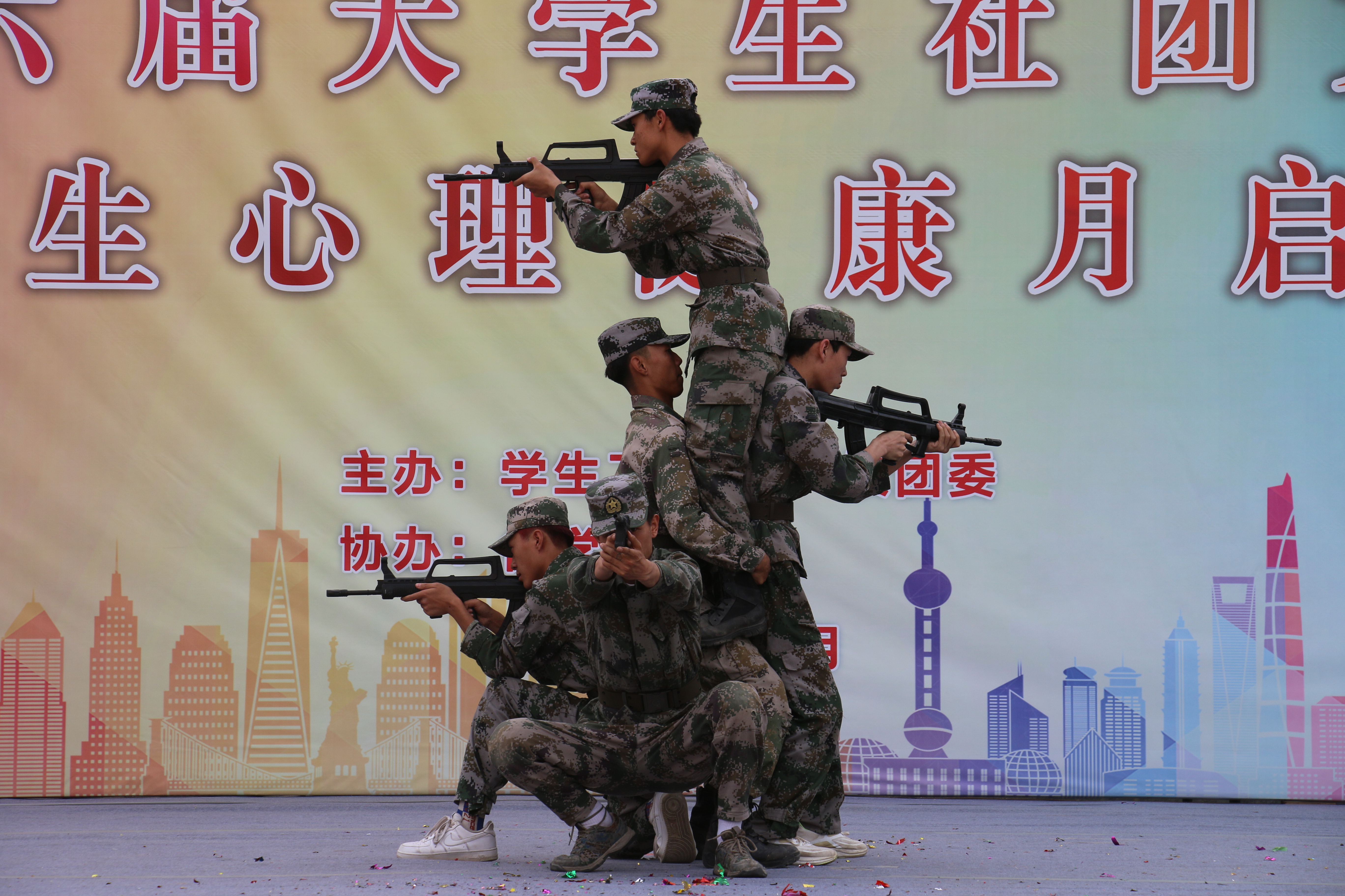 學(xué)校校長(zhǎng)、黨委副書(shū)記張開(kāi)禮對(duì)社團(tuán)文化節(jié)的開(kāi)幕表示祝賀并致開(kāi)幕詞。他指出,學(xué)校社團(tuán)是武職青年學(xué)子發(fā)揚(yáng)興趣特長(zhǎng),陶冶興趣情操,拓展能力,創(chuàng)新創(chuàng)造的核心平臺(tái)。希望各學(xué)生社團(tuán)進(jìn)一步加強(qiáng)建設(shè),并對(duì)今后學(xué)生社團(tuán)發(fā)展提出三點(diǎn)要求:一是堅(jiān)定理想信念,做好社團(tuán)文化的建設(shè)者。學(xué)生社團(tuán)要堅(jiān)持以正能量、新思想、新形式統(tǒng)領(lǐng)社團(tuán)文化建設(shè),建立文化自信。二是勇于擔(dān)當(dāng)使命,做好凝聚青年的組織者。社團(tuán)活動(dòng)必須堅(jiān)持以服務(wù)廣大同學(xué)為根本原則,開(kāi)展方向正確、健康向上、形式多樣的社團(tuán)活動(dòng)。三是堅(jiān)持守正創(chuàng)新,做好創(chuàng)新實(shí)踐的探索者。社團(tuán)活動(dòng)要以創(chuàng)新、實(shí)踐為著力點(diǎn),搭建培養(yǎng)創(chuàng)新社團(tuán)平臺(tái),培育一批叫得響、反響好的創(chuàng)新實(shí)踐項(xiàng)目。