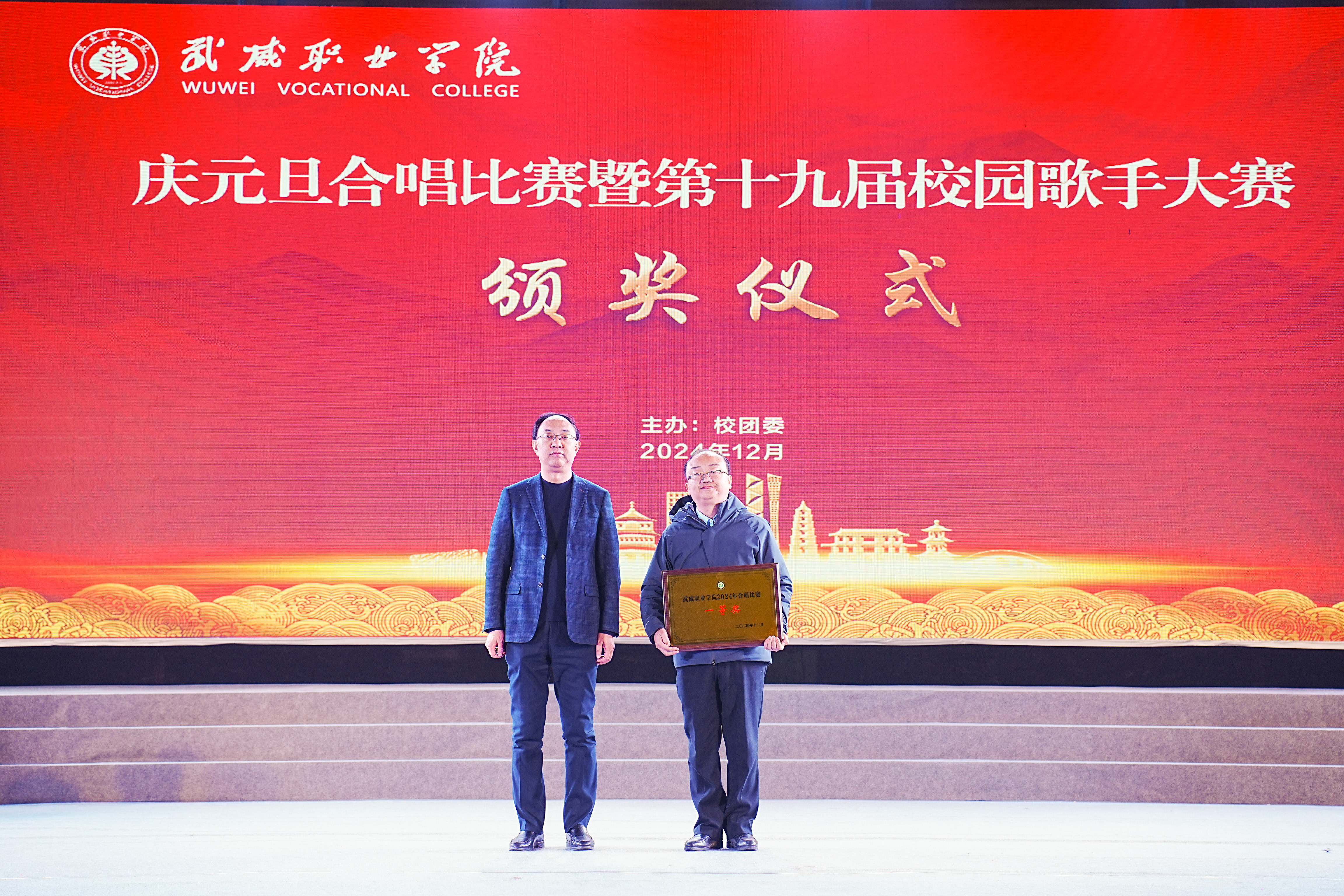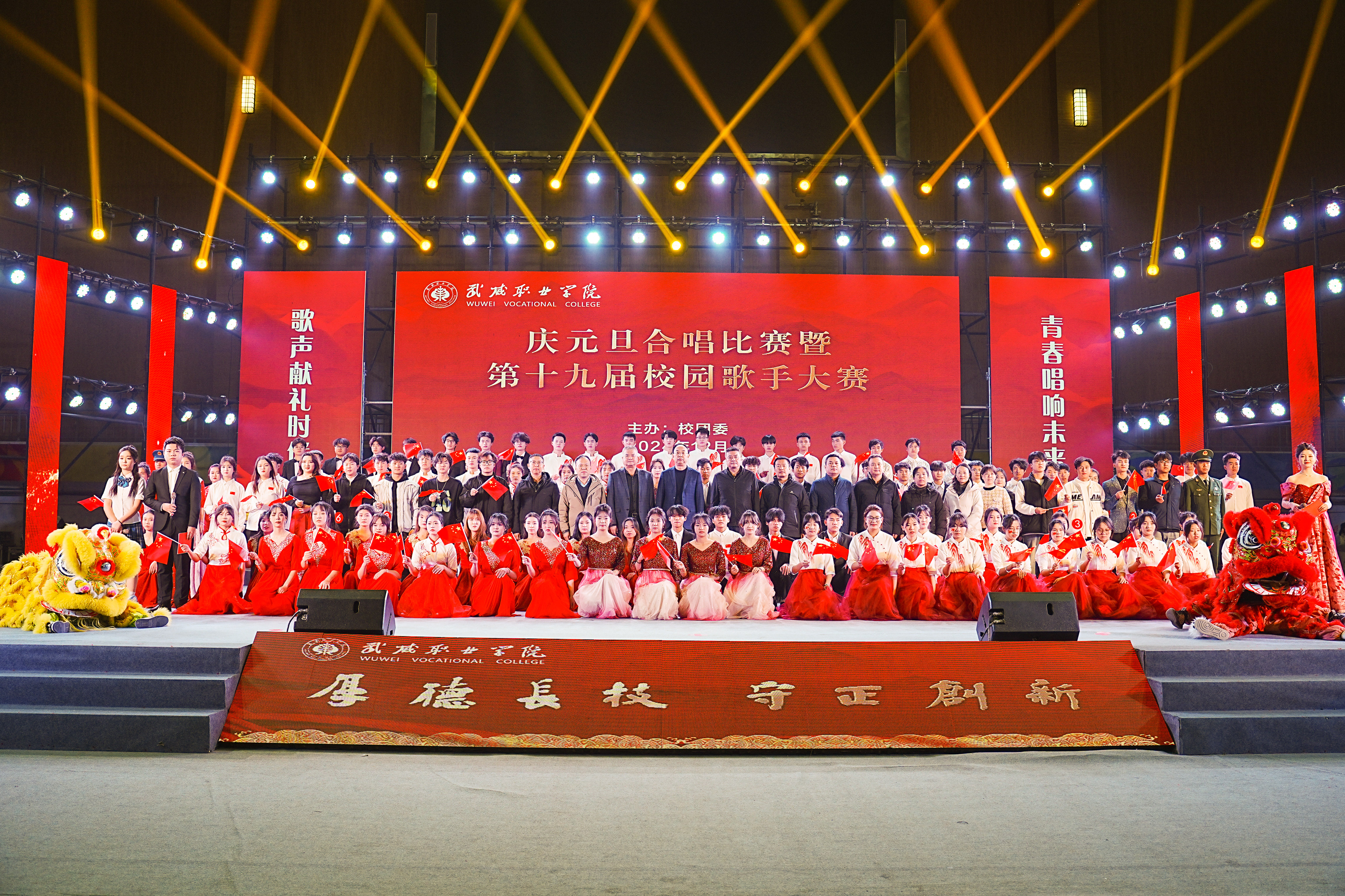 歌聲獻禮時代,青春唱響未來。12月26日晚,學?!皯c元旦”合唱比賽暨第十九屆校園歌手大賽在體育館成功舉辦。學校黨委書記王宏出席活動并為獲獎集體和個人頒獎,黨委委員、副校長王守云出席活動,各二級學院和相關部門負責人與2000余名師生現(xiàn)場觀看了比賽。