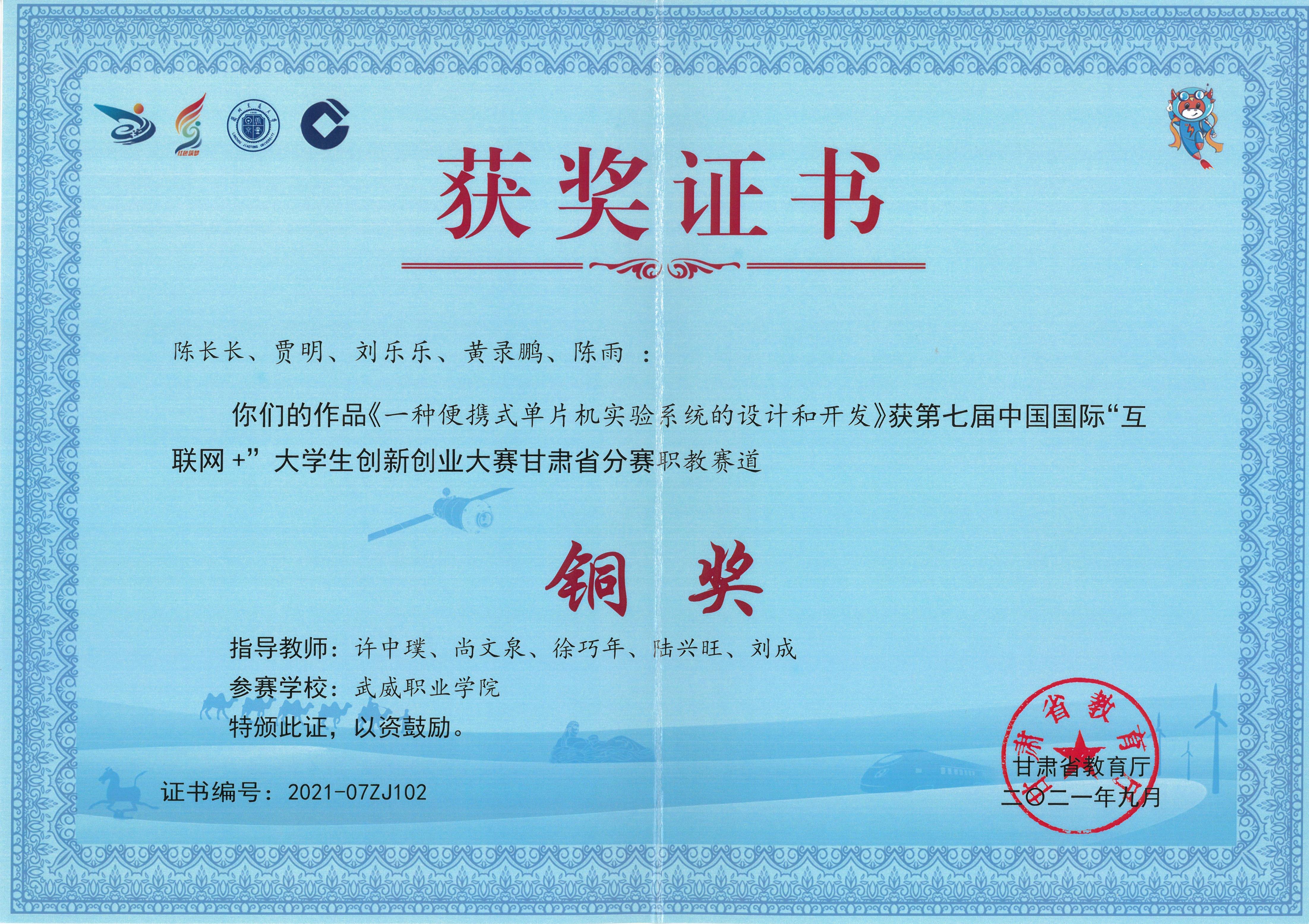 2021年學生獲第七屆中國國際“互聯網+”大學生創(chuàng)新創(chuàng)業(yè)大賽甘肅賽區(qū)銅獎