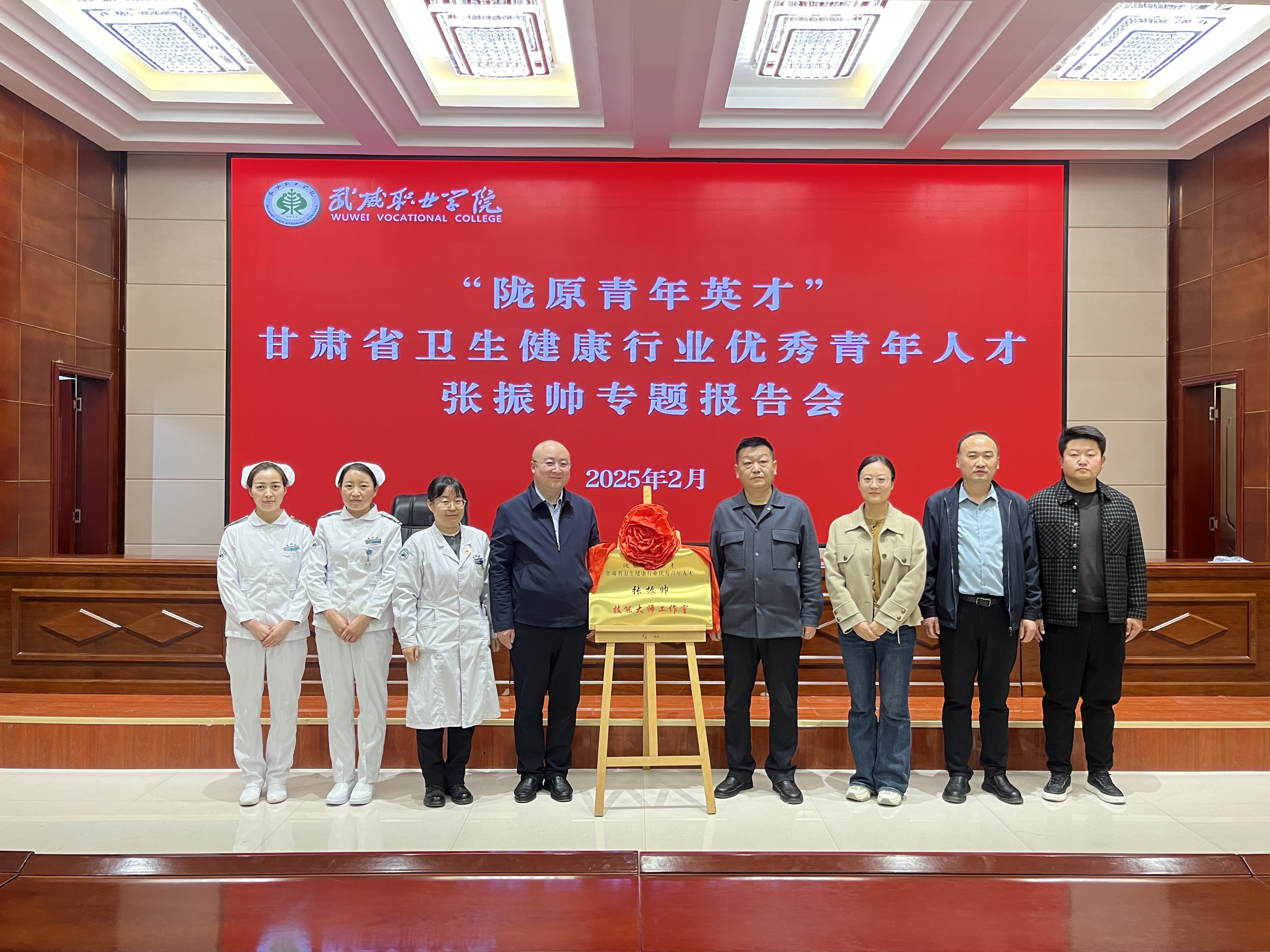 2月27日,“隴原青年英才”、甘肅省衛(wèi)生健康行業(yè)優(yōu)秀青年人才張振帥技能大師工作室揭牌儀式暨專題報告會在武威職業(yè)學院菁英廳隆重舉行。藥學院副院長馬琪主持報告會,200余名師生代表參會,旨在傳承中醫(yī)藥文化,發(fā)揮技能大師引領(lǐng)作用,培育高素質(zhì)中醫(yī)藥技能人才。