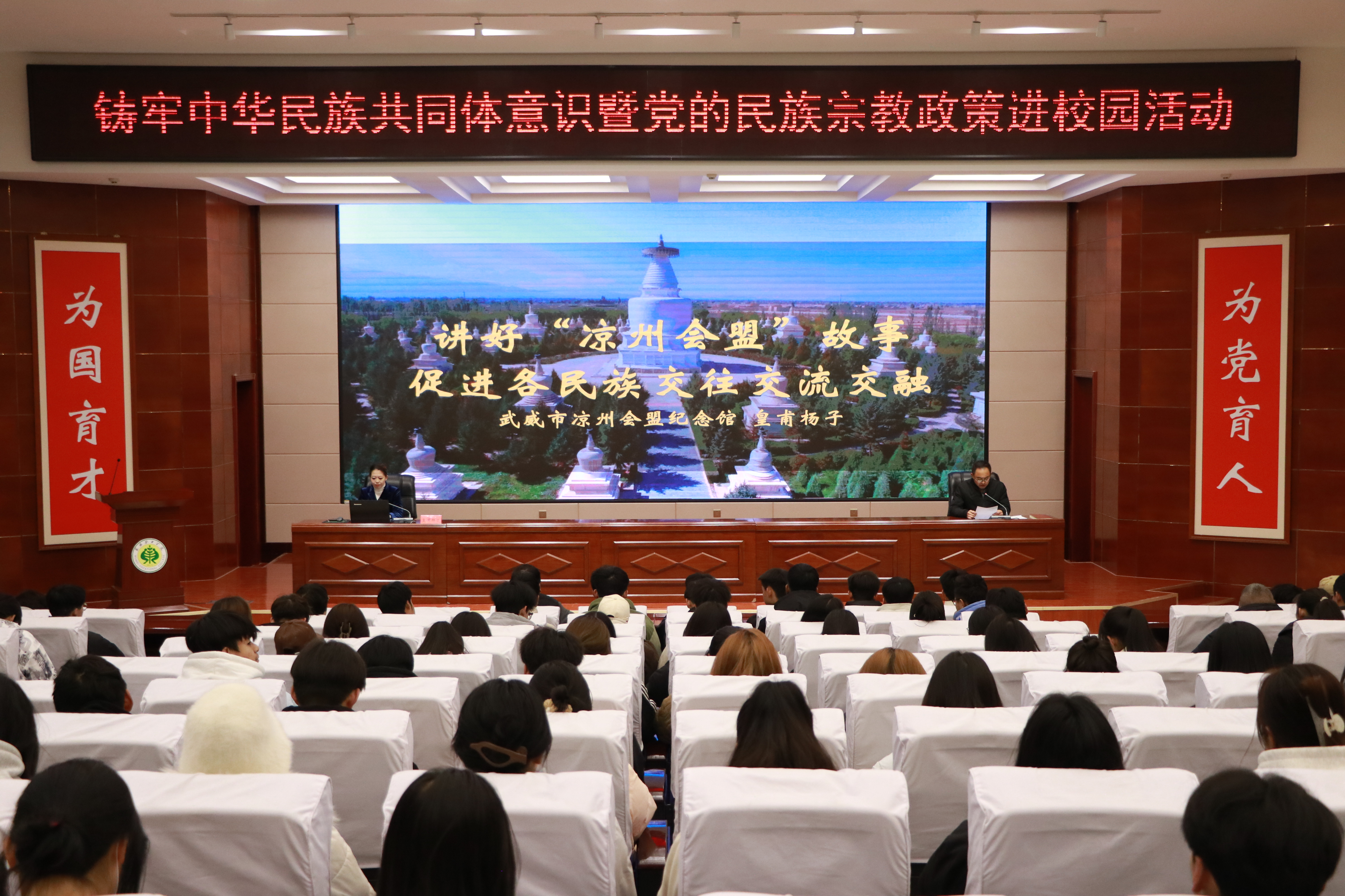 12月19日,學(xué)校聯(lián)合武威市涼州會盟紀(jì)念館,成功舉辦了鑄牢中華民族共同體意識暨民族宗教政策進(jìn)校園系列活動。活動共吸引300余名師生參觀聽講。