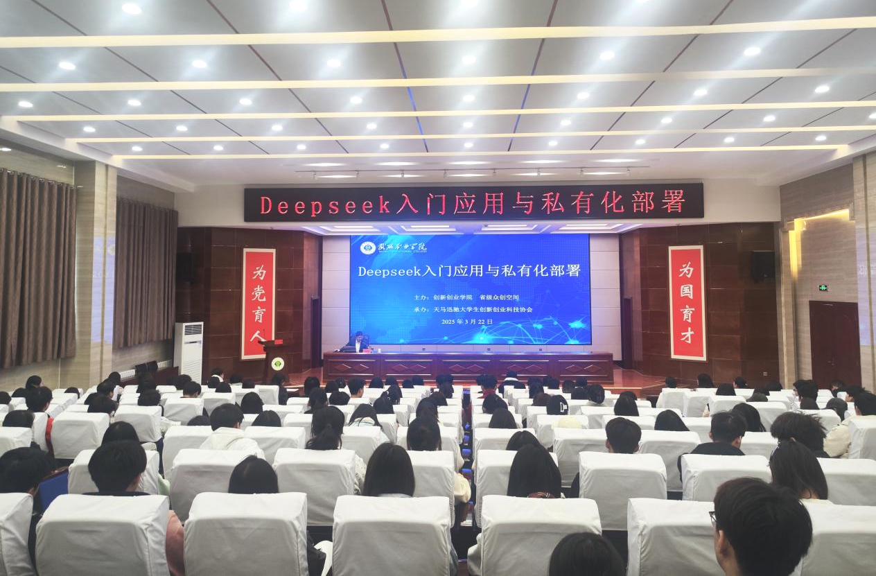 為深化校企合作、推動(dòng)人工智能技術(shù)在職業(yè)教育與創(chuàng)新實(shí)踐中的應(yīng)用,3月22日,創(chuàng)新創(chuàng)業(yè)學(xué)院特邀武威市大數(shù)據(jù)公司工程師劉曉寶,開展了“DeepSeek入門應(yīng)用與私有化部署”專題培訓(xùn),學(xué)校200余名師生參加了培訓(xùn)。