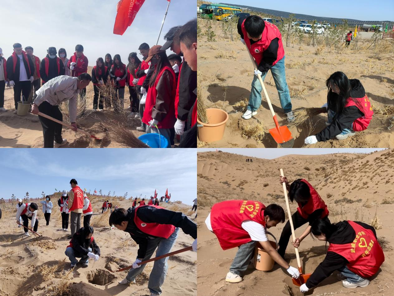?4月22日,在第54個(gè)世界地球日來(lái)臨之際,武威職業(yè)學(xué)院“青馬工程”培訓(xùn)班30名學(xué)員代表前往涼州區(qū)九墩鎮(zhèn)騰格里沙漠邊緣開展壓沙治沙實(shí)踐活動(dòng)。學(xué)員們以“植綠護(hù)綠青年行”的實(shí)際行動(dòng),踐行習(xí)近平生態(tài)文明思想,為筑牢國(guó)家西部生態(tài)安全屏障貢獻(xiàn)青春力量。?