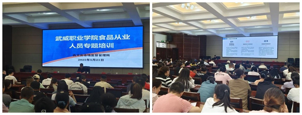 5月21日下午,學(xué)校邀請涼州區(qū)市場監(jiān)管局副局長汪大勇、西關(guān)街市場監(jiān)督管理所所長秦榮華開展食品安全專題培訓(xùn)。學(xué)生食堂、超市、后勤服務(wù)樓管理人員和全體從業(yè)人員200余人參加培訓(xùn)。培訓(xùn)由后勤管理處處長占發(fā)禹主持。