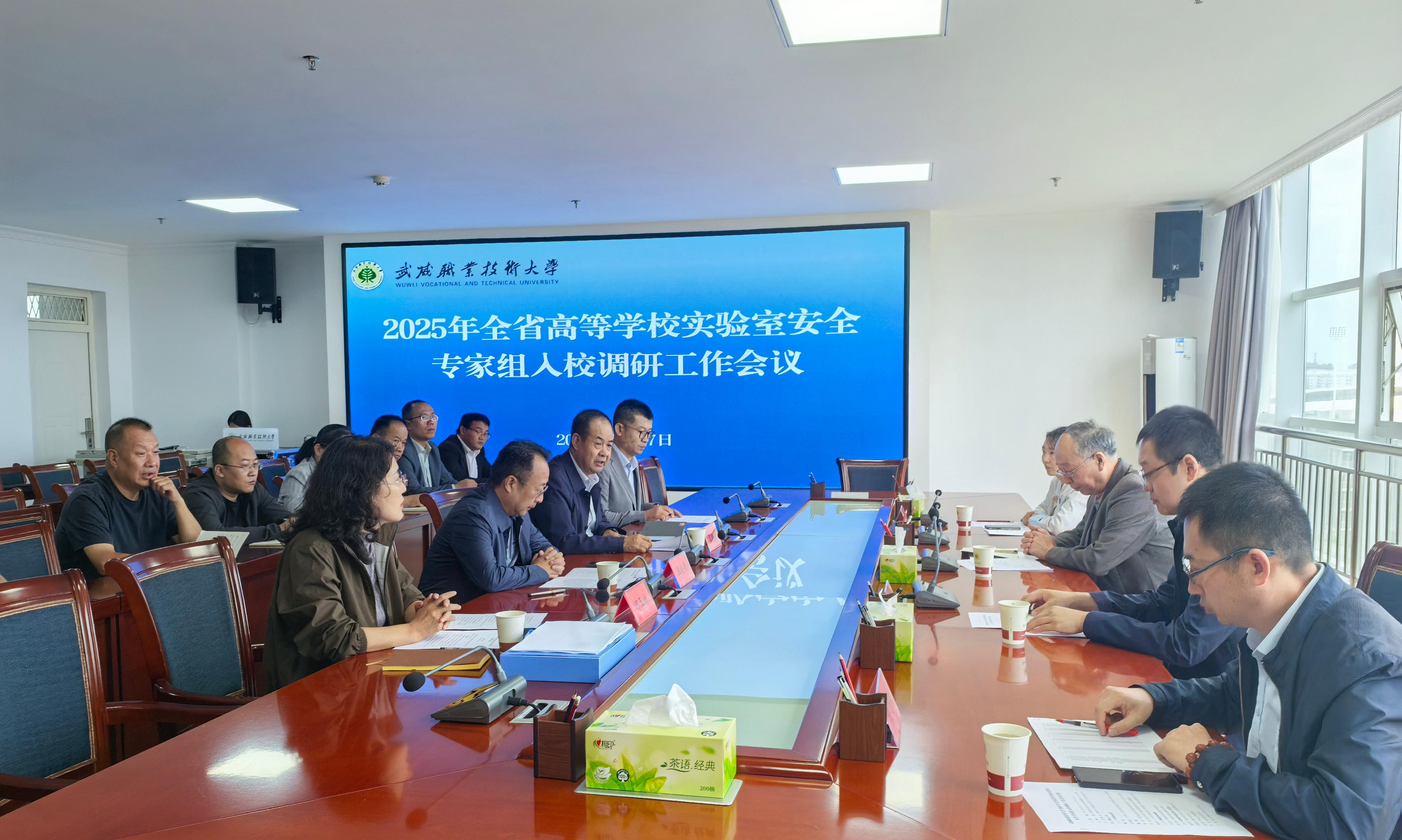 根據《甘肅省教育廳關于組織開展2025年高等學校實驗室安全工作的通知》要求和安排部署,8月27日,省教育廳高校實驗室安全調研專家組一行蒞臨學校開展實驗室安全工作調研。武威市教育局副局長王會民、學校黨委副書記翟存祥、相關部門及學院(部)負責人參加會議。