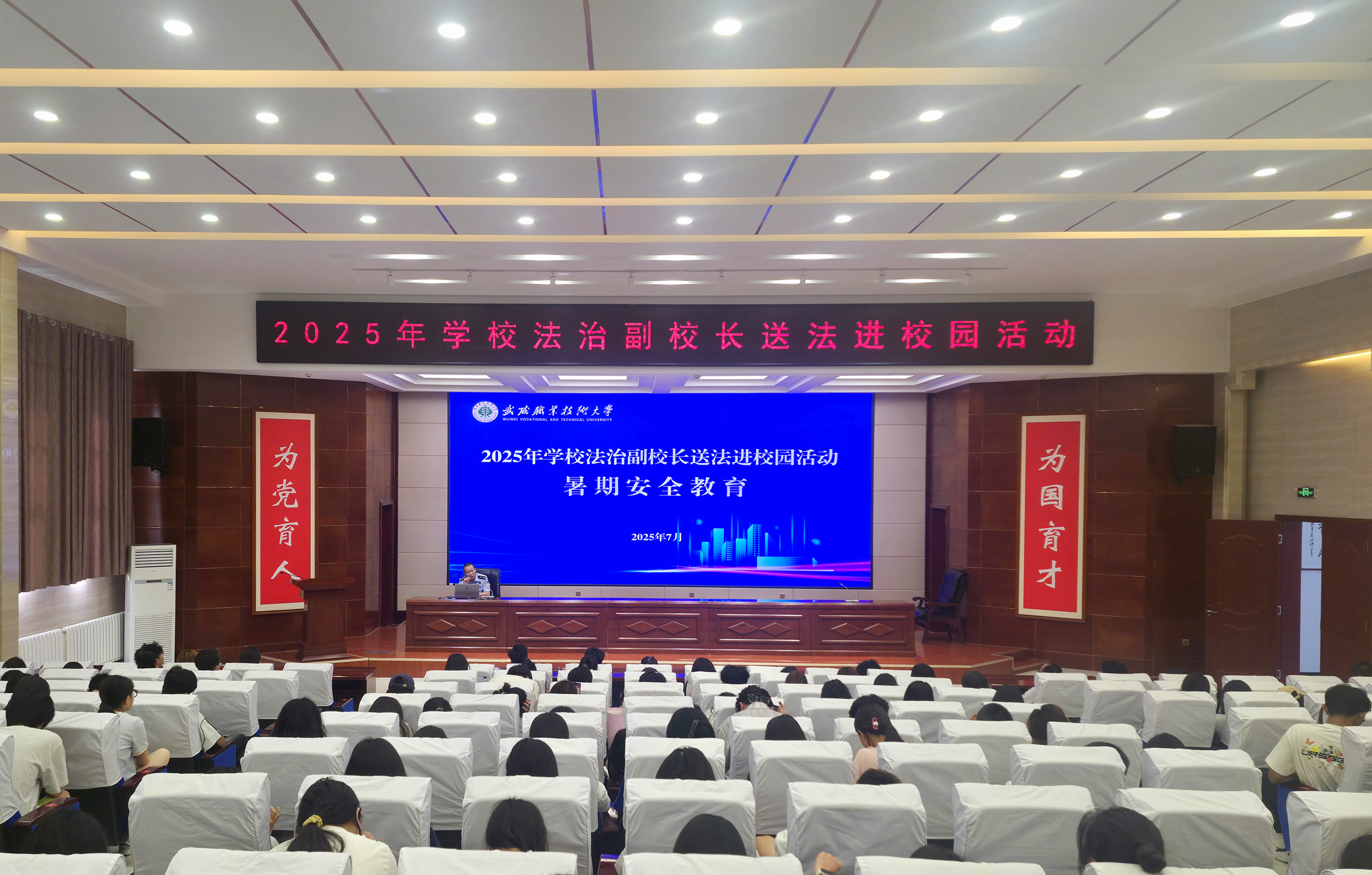 7月7日,學校法治副校長進校開展“送法進校園”宣講活動,旨在進一步提升師生安全防護與法治素養(yǎng),為暑期安全保駕護航。安全保衛(wèi)處、學生工作部負責同志及各學院輔導員、學生代表共200余人參加活動。?