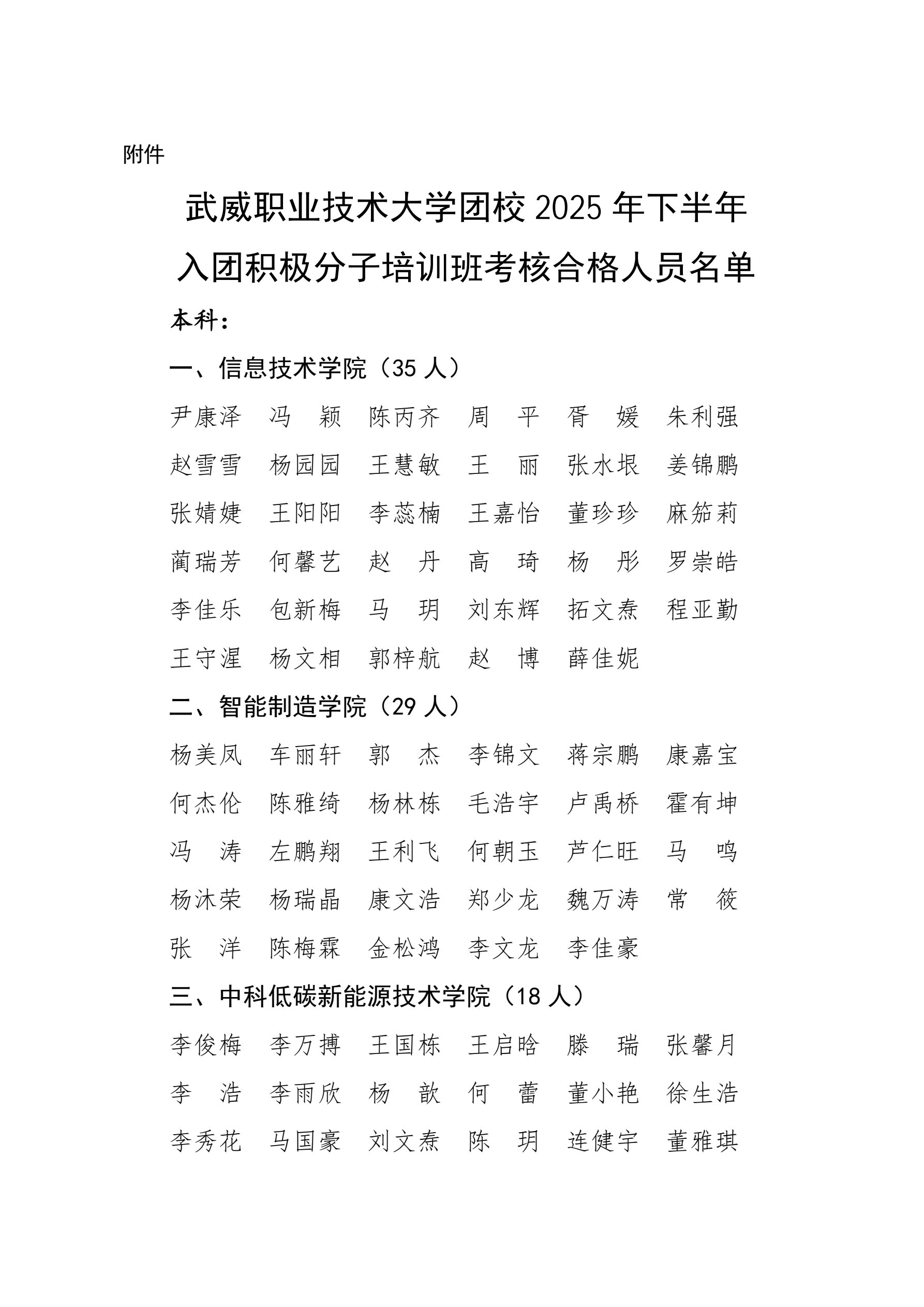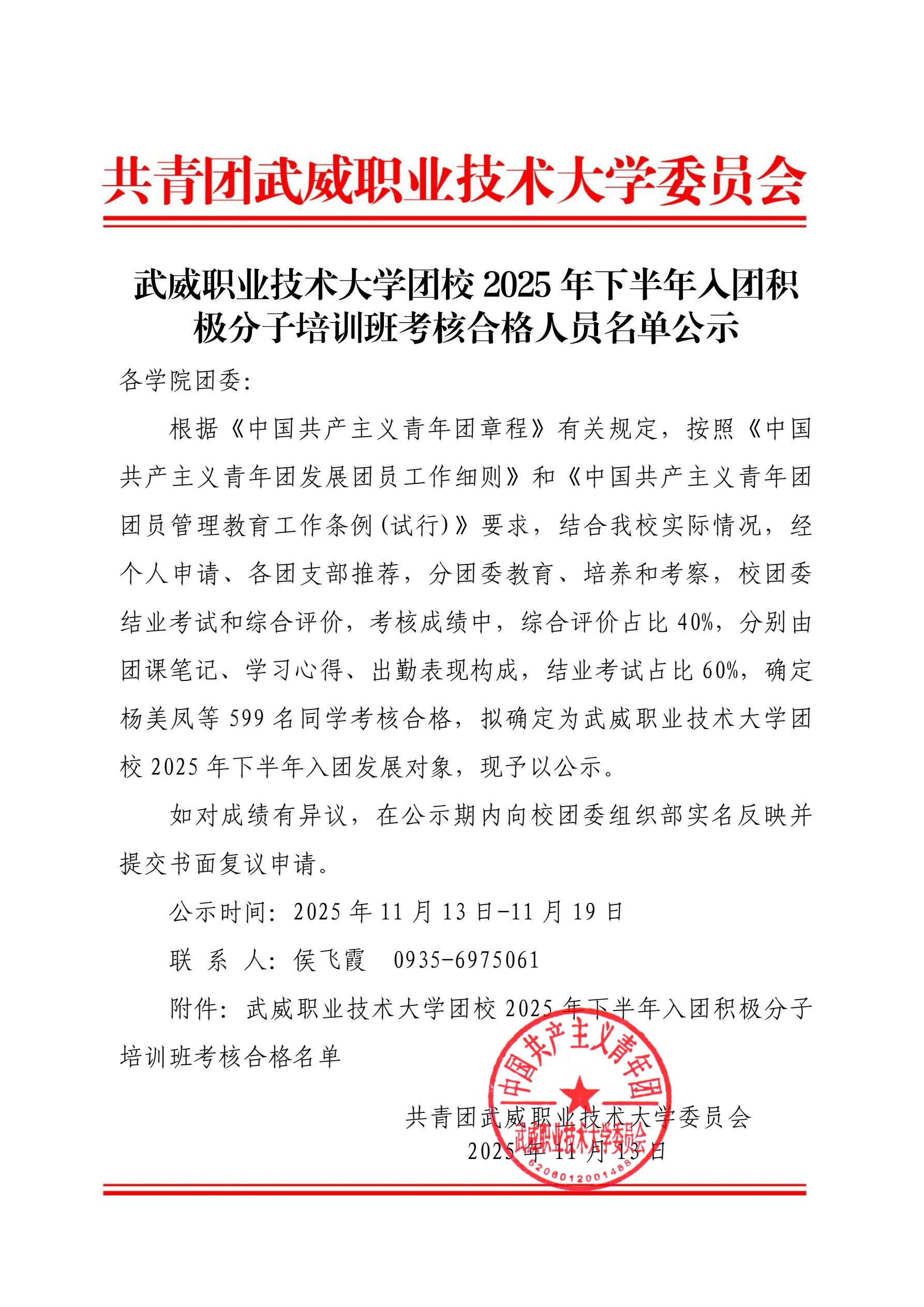 武威職業(yè)技術(shù)大學(xué)團校2025年下半年入團積極分子培訓(xùn)班考核合格人員名單公示