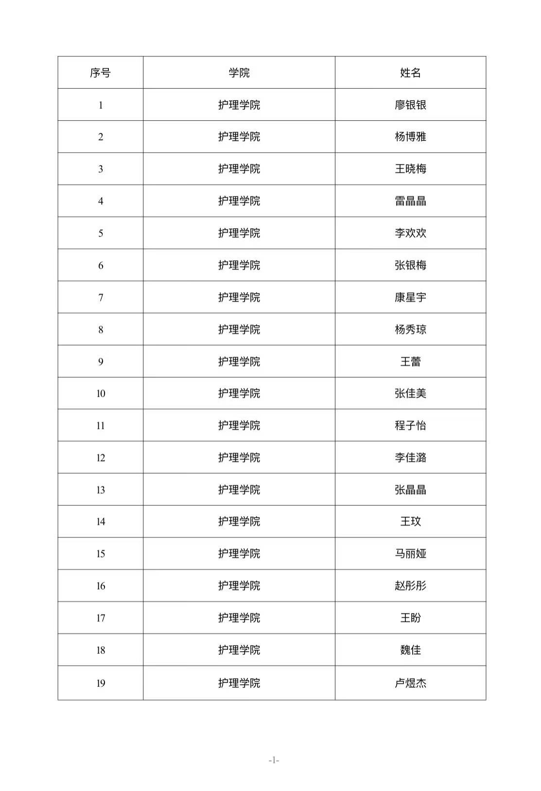護理學院關于學校獎學金推薦人選的公示