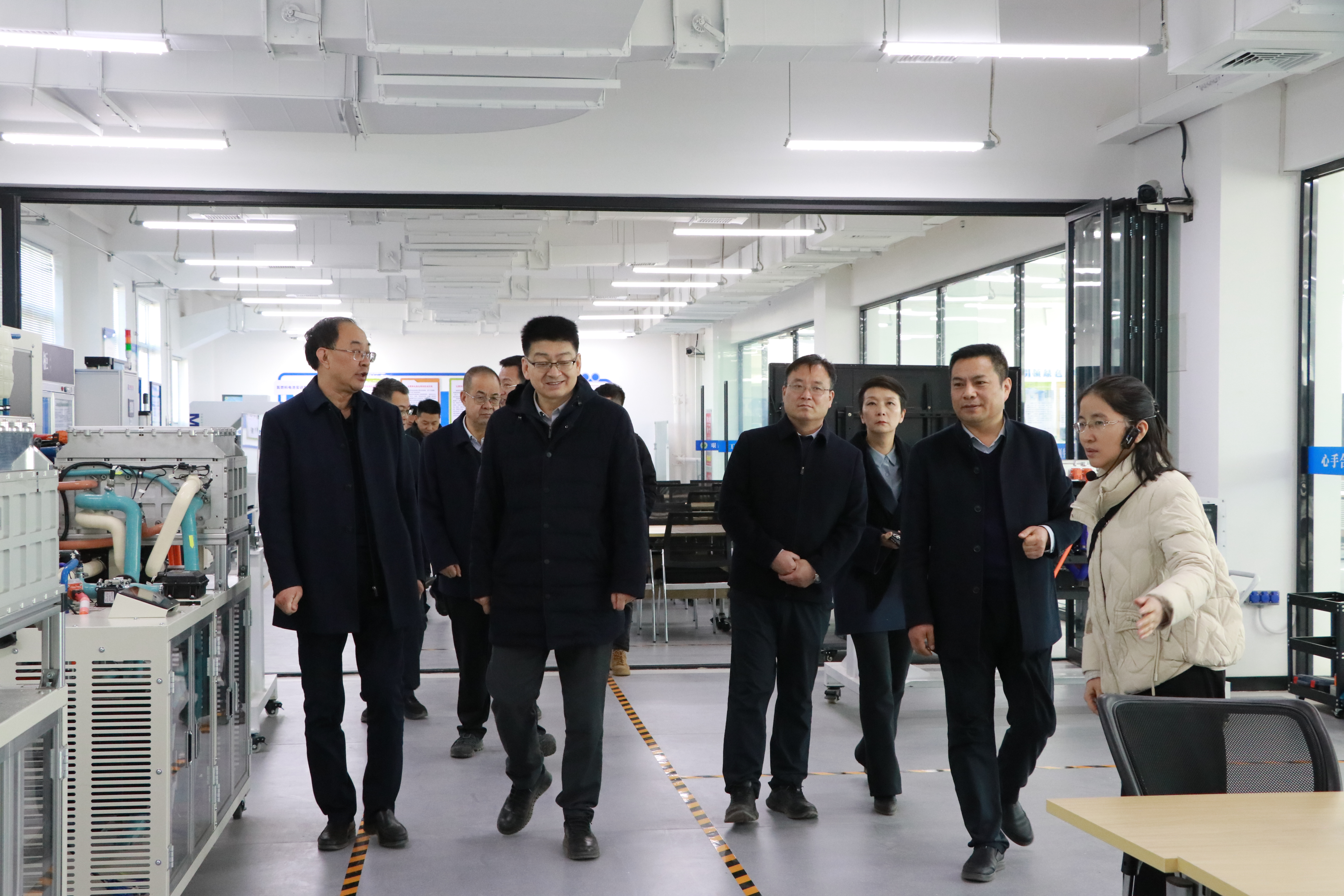 韓高年一行先后考察參觀了學校新能源科技館、現(xiàn)代農(nóng)業(yè)生產(chǎn)實訓基地、智能制造實訓中心、應急管理產(chǎn)業(yè)學院等校內(nèi)實訓場地,詳細了解學校專業(yè)建設發(fā)展情況。韓高年充分肯定了我校辦學成效,并對我校成功升格本科層次職業(yè)學校表示祝賀,分享了蘭州城市學院在本科專業(yè)綜合改革與科研平臺建設方面的寶貴經(jīng)驗。他希望以此為契機,開啟兩校多領域、深層次的交流合作新篇章。