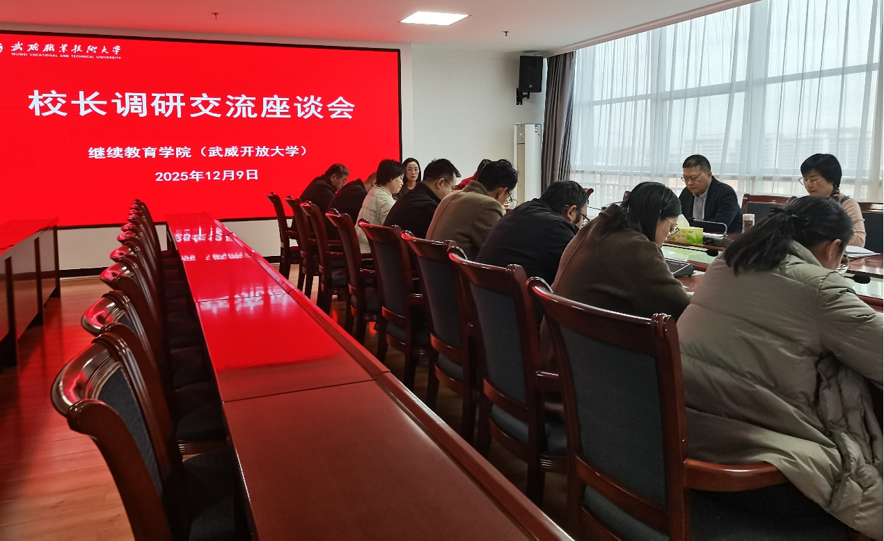 12月9日,校長(zhǎng)李海軍深入繼續(xù)教育學(xué)院(武威開放大學(xué))開展調(diào)研指導(dǎo)工作。此次調(diào)研聚焦學(xué)院招生管理、教學(xué)運(yùn)行、社會(huì)培訓(xùn)、社區(qū)教育等核心議題,旨在通過深度交流凝聚共識(shí),為提升辦學(xué)質(zhì)量與服務(wù)水平注入新動(dòng)能。黨委委員、副校長(zhǎng)何毅,繼續(xù)教育學(xué)院領(lǐng)導(dǎo)班子及全體教師參與調(diào)研。