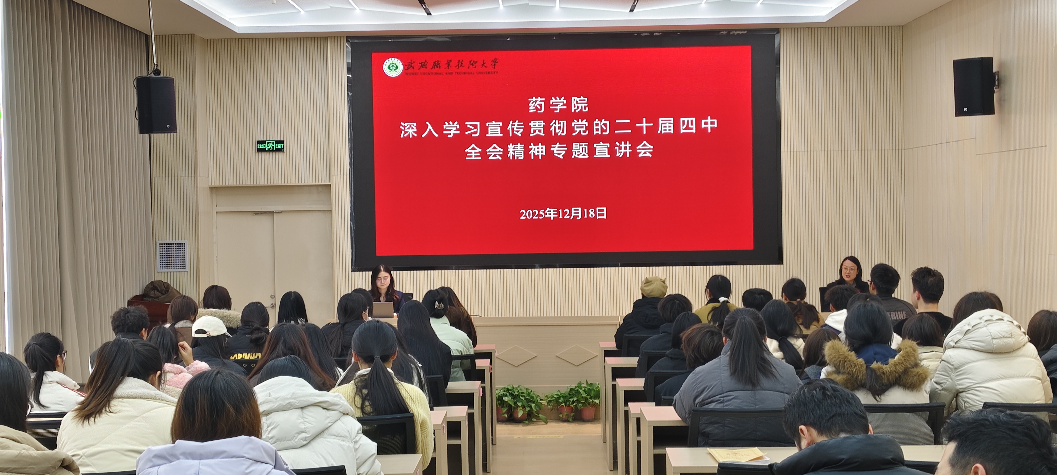 12月18日,學(xué)院黨總支邀請學(xué)校宣講組成員、馬克思主義學(xué)院教師郭雲(yún)在圖書館報告廳作了黨的二十屆四中全會精神專題宣講。學(xué)院全體黨員、教職工、入黨積極分子和團學(xué)干部聆聽了宣講。副院長馬琪主持宣講會。