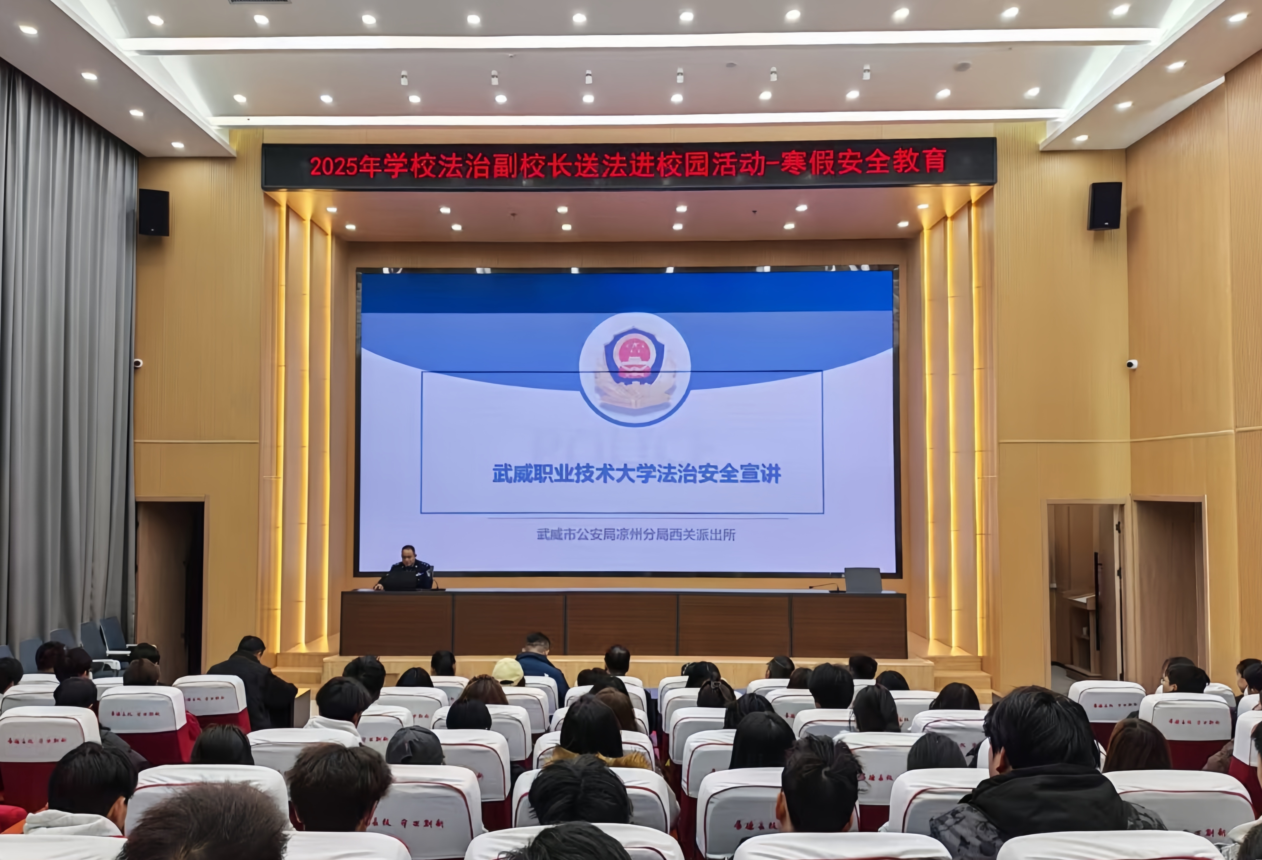 為切實增強師生法治觀念與安全防范意識,筑牢校園安全防線,12月30日,學校法治副校長送法進校園專題宣講活動在能源科技樓一樓學術報告廳舉行,各學院輔導員及學生代表共計110余人參加活動。