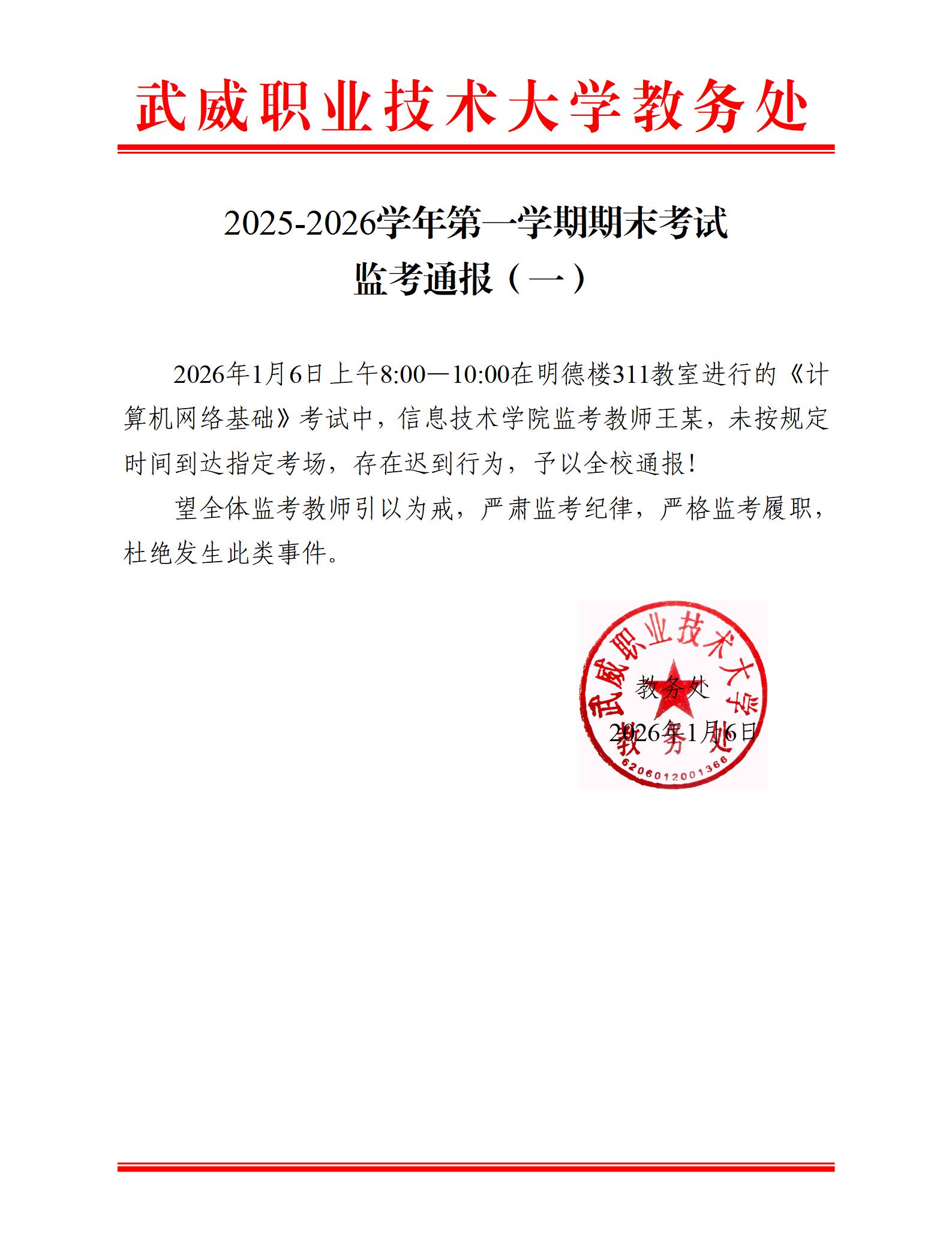 2025-2026學年第一學期期末考試監(jiān)考通報(一)