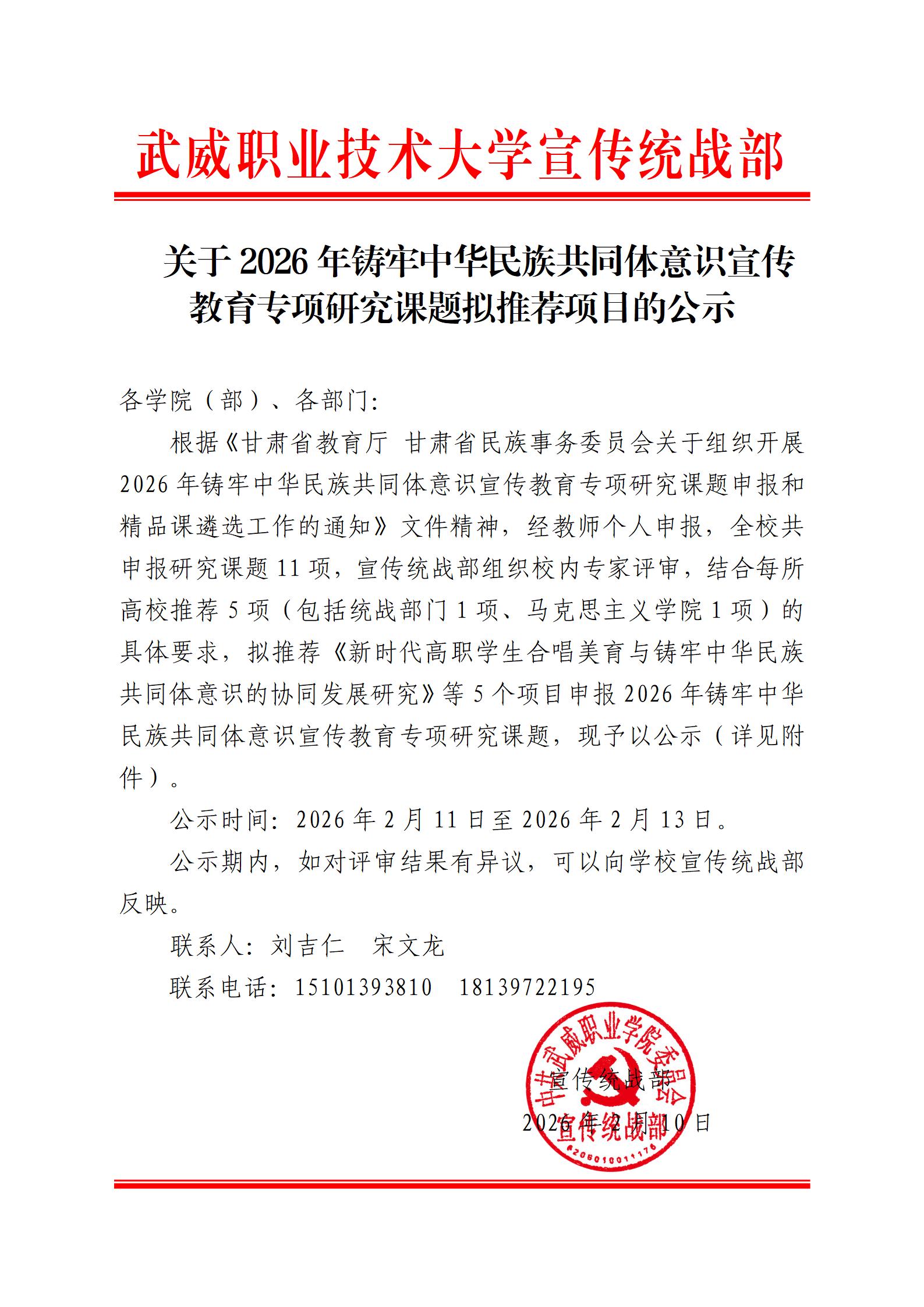 關于2026年鑄牢中華民族共同體意識宣傳教育專項研究課題擬推薦項目的公示