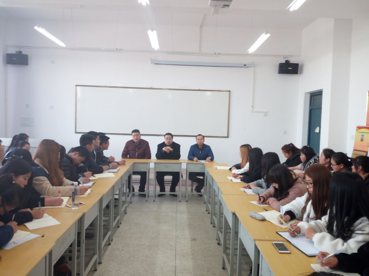 系團總支書記唐鑫基老師對今后團學(xué)干部的工作做了統(tǒng)一安排,并給團學(xué)干部提出希望。同時要求團學(xué)干部做好系里安排的任務(wù),為全體學(xué)生營造良好的學(xué)習(xí)生活環(huán)境,共建安全文明和諧校園。
