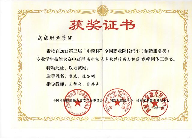 我院學(xué)生在第三屆“中銳杯”全國(guó)職業(yè)院校汽車(chē)專(zhuān)業(yè)學(xué)生技能大賽中獲獎(jiǎng)