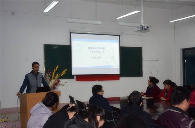 晏素珍就2016年我系教師培訓工作做了簡單回顧與總結(jié),隨后蔡飛從美國文化入手,介紹了他們在美國加利福尼亞州社區(qū)學院學習的基本情況,分享了實踐教育教學的信息、理念、方法、感受。龔建軍從美國教育體系著手,分享了他在美國加利福尼亞州社區(qū)學院參加的“了解美國現(xiàn)代教育教學理念,全面提高骨干教師專業(yè)建設(shè)與實踐能力”培訓中的所學所聞,重點介紹了美國職業(yè)教育體系和職業(yè)教育教學及學習模式。