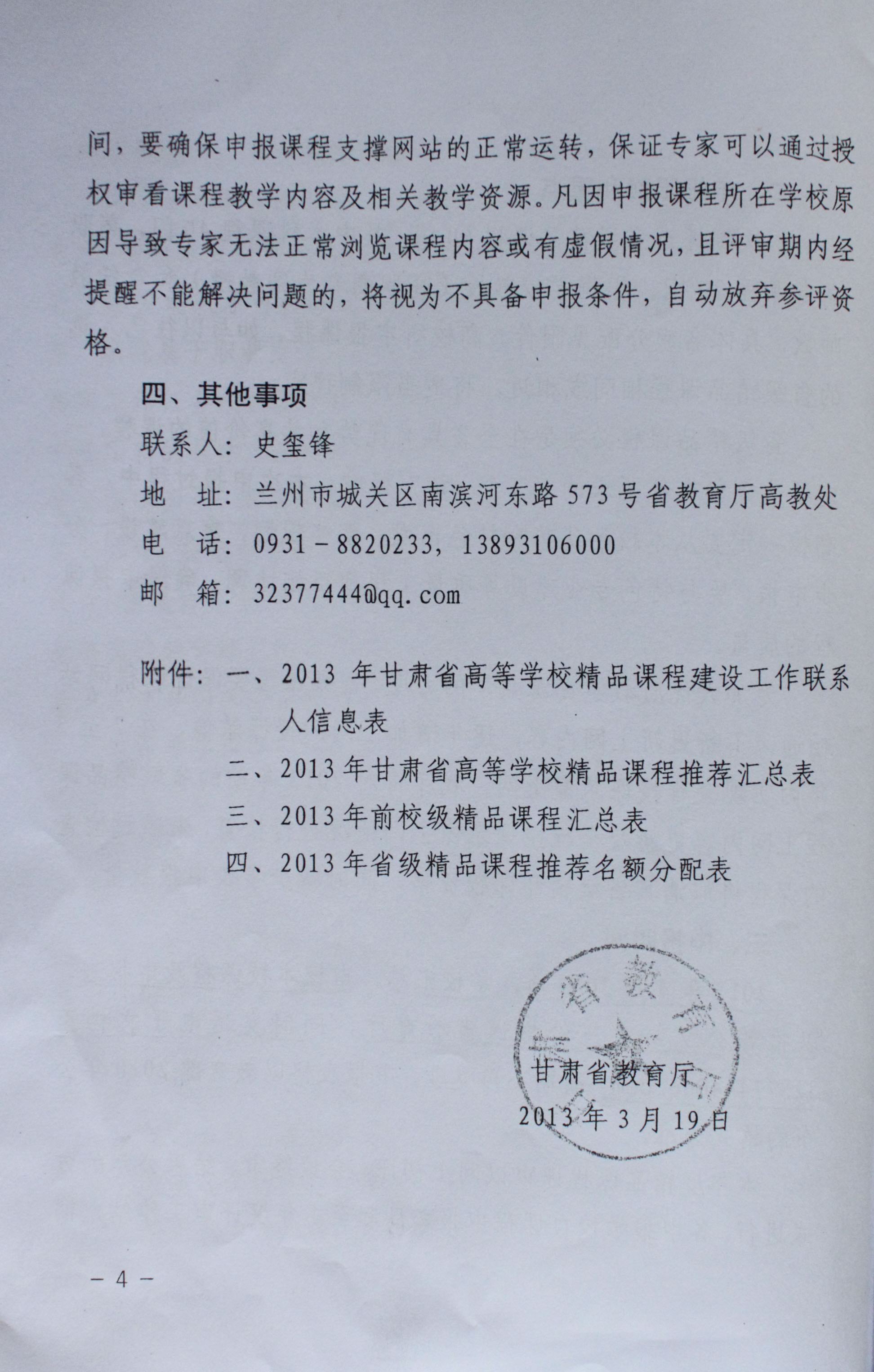 2.經(jīng)研究確定為推薦申報省級精品課程的,于4月18日前將定稿的2013年省級精品課程申報書電子檔傳至教務(wù)處趙曉麗處,申報表格以教育部2010年公布的格式為準。