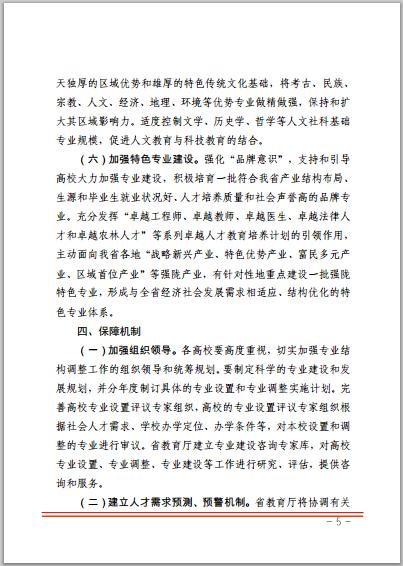 關(guān)于進(jìn)一步加強(qiáng)全省高等學(xué)校專業(yè)結(jié)構(gòu)調(diào)整工作的指導(dǎo)意見