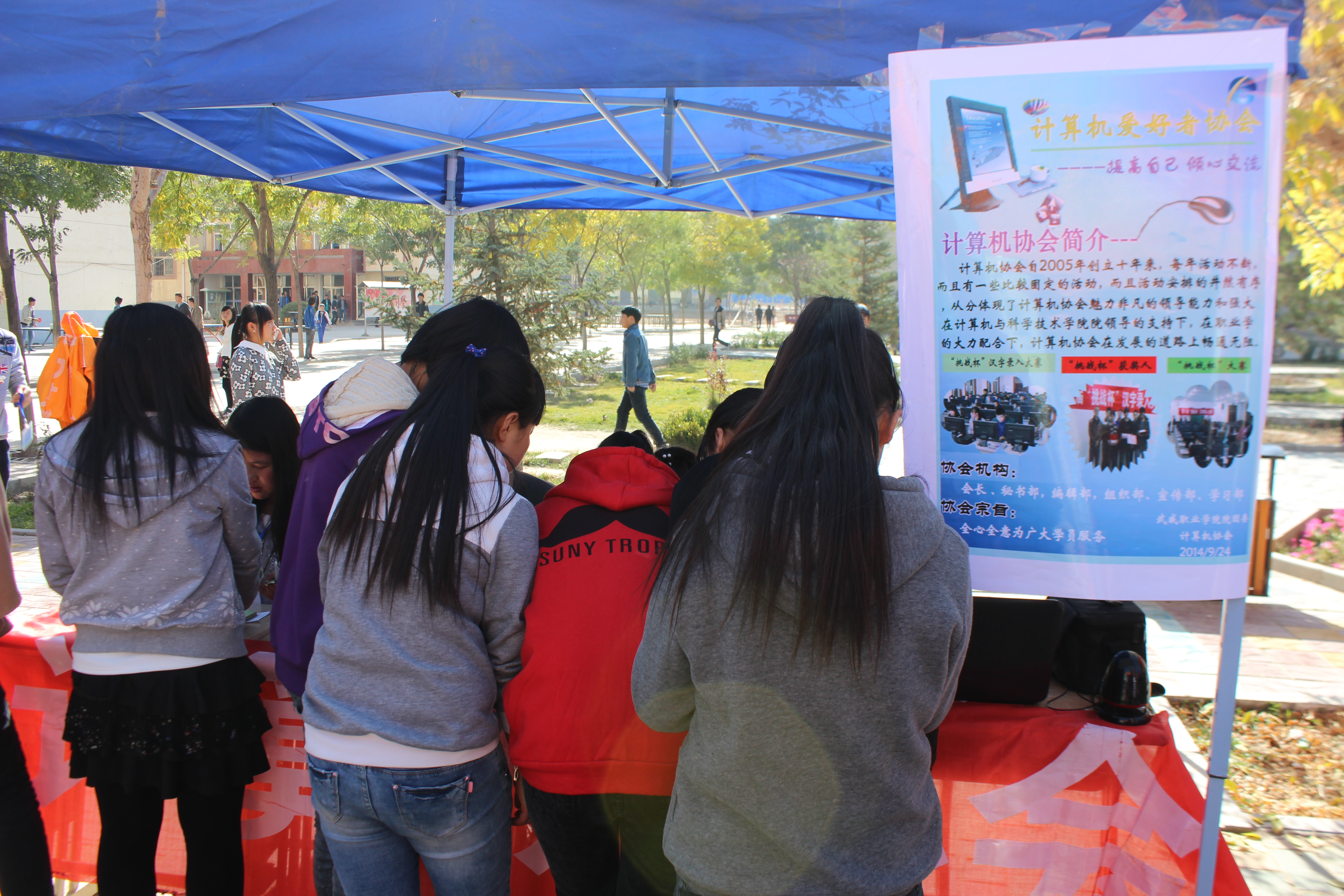 為使社團(tuán)永葆活力,鼓勵(lì)學(xué)生積極參與學(xué)生社團(tuán)活動(dòng),給新生提供展示和鍛煉自我的平臺(tái),打造“學(xué)生第二課堂”,開創(chuàng)“校園文化豐富,社團(tuán)發(fā)展健康”新局面。電子信息工程系計(jì)算機(jī)協(xié)會(huì)和“小牛頓”電子協(xié)會(huì)于2014年10月21日中午在舊食堂門口進(jìn)行社團(tuán)納新活動(dòng)。