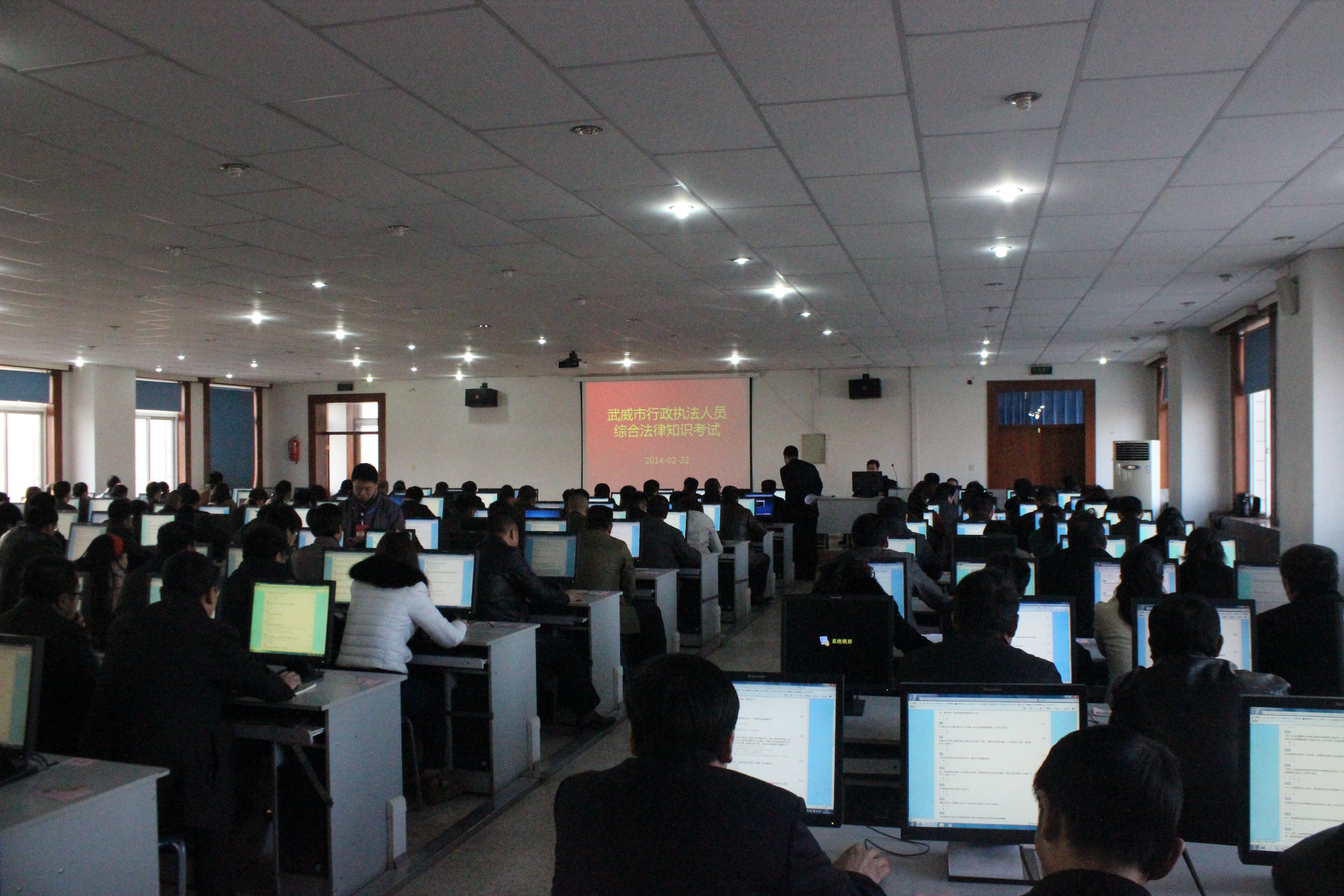 2014年2月22日,全市各行政執(zhí)法單位916名執(zhí)法人員在我院一號教學樓十號、十一號機房進行了法律綜合知識無紙化考試。