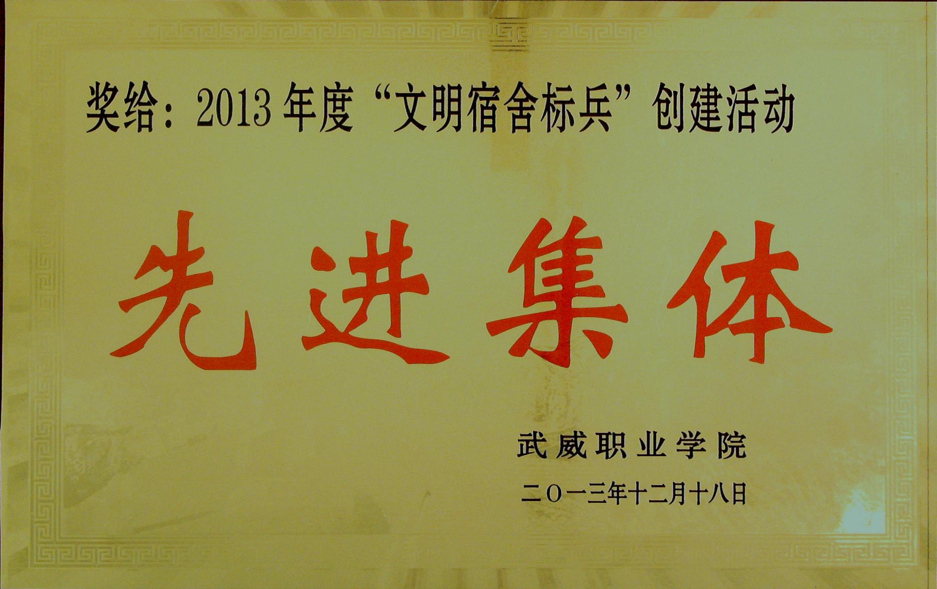2013年“文明宿舍標(biāo)兵”創(chuàng)建活動(dòng)先進(jìn)集體獎(jiǎng)