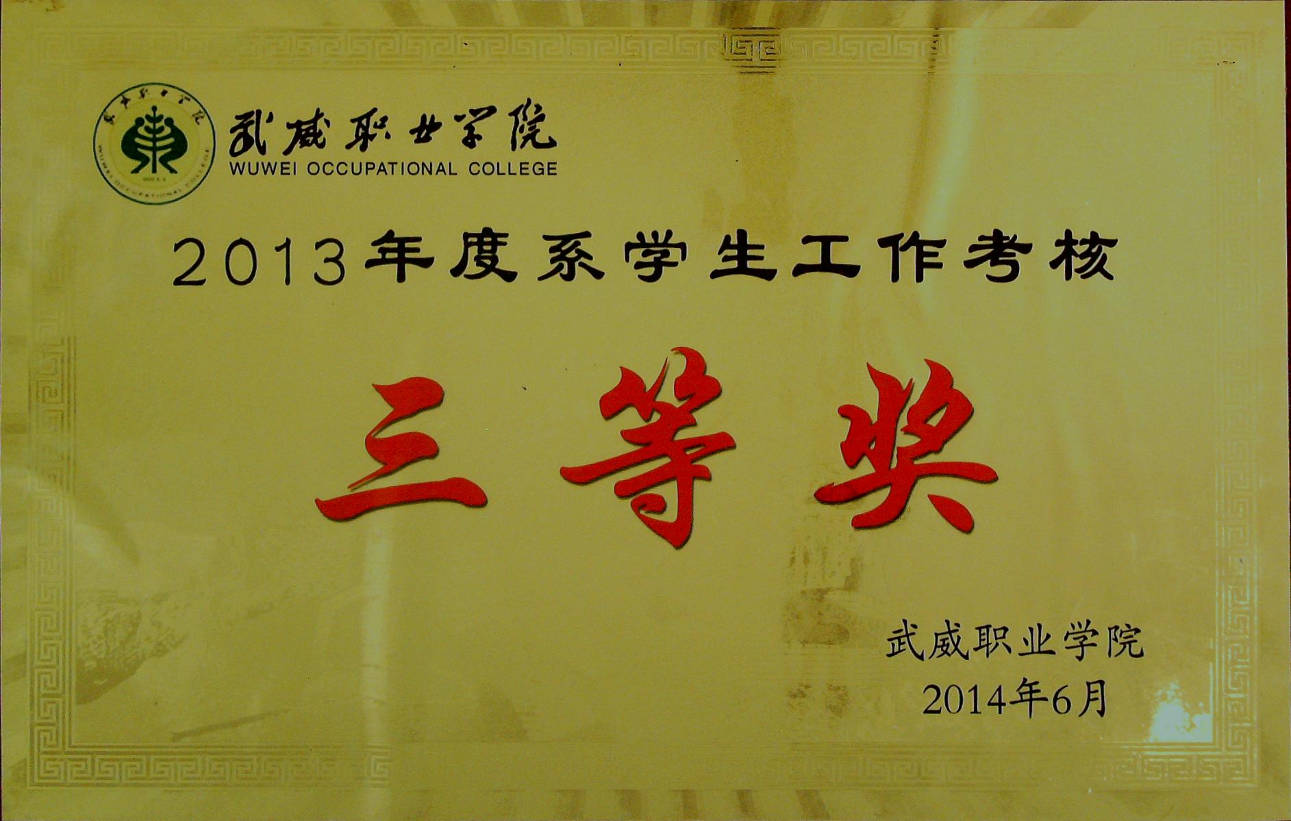 2013年度系學(xué)生工作考核三等獎