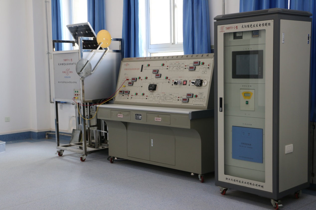 實(shí)訓(xùn)功能:本實(shí)訓(xùn)室擁有金相教學(xué)顯微鏡、X射線晶體定向儀、電池特性測(cè)試儀、太陽(yáng)光伏材料電阻特性測(cè)量實(shí)驗(yàn)裝置、太陽(yáng)輻射電流表、總輻射表、經(jīng)濟(jì)性純水器等設(shè)備共31臺(tái)(套)。主要服務(wù)課程為光伏發(fā)電技術(shù)分析與應(yīng)用、光伏控制器拆裝與維修等。