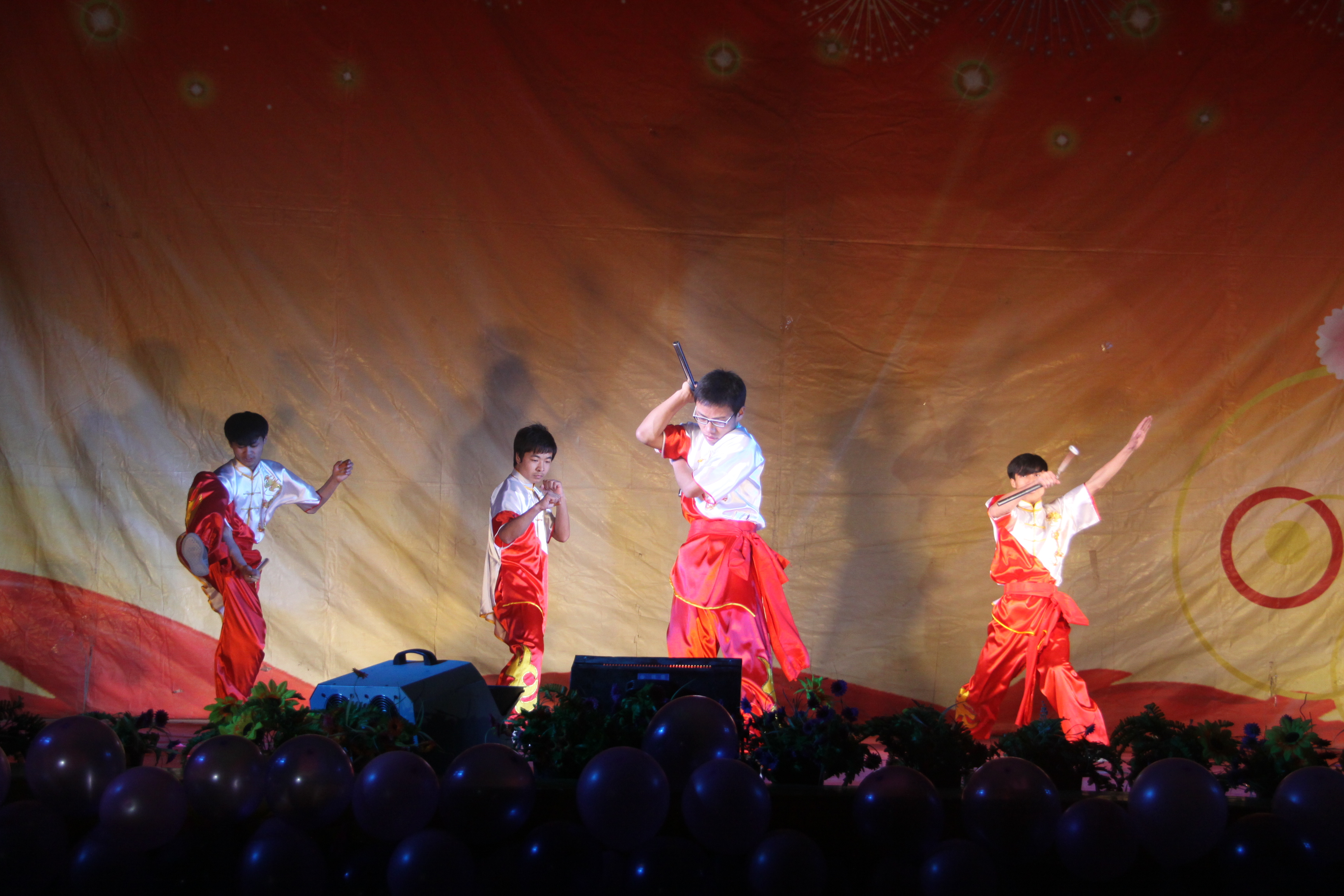 晚上的開幕式文藝演出有近1200名師生觀看,現(xiàn)場氣氛熱烈。各社團表演了精彩紛呈的文藝節(jié)目,有舞蹈《歡樂的跳吧》、《有沒有》、《Boy and girl》等,歌伴舞《青花瓷》、《瑪利亞》,獨唱《紅日》,樂隊表演《約定的地方》,曲藝類節(jié)目《魔術表演》、相聲《說地名》、小品《大話西游》和武術表演、詩歌朗誦等。整個演出洋溢著青春的風采,讓現(xiàn)場的每一位同學感受到了社團文化的無窮魅力。