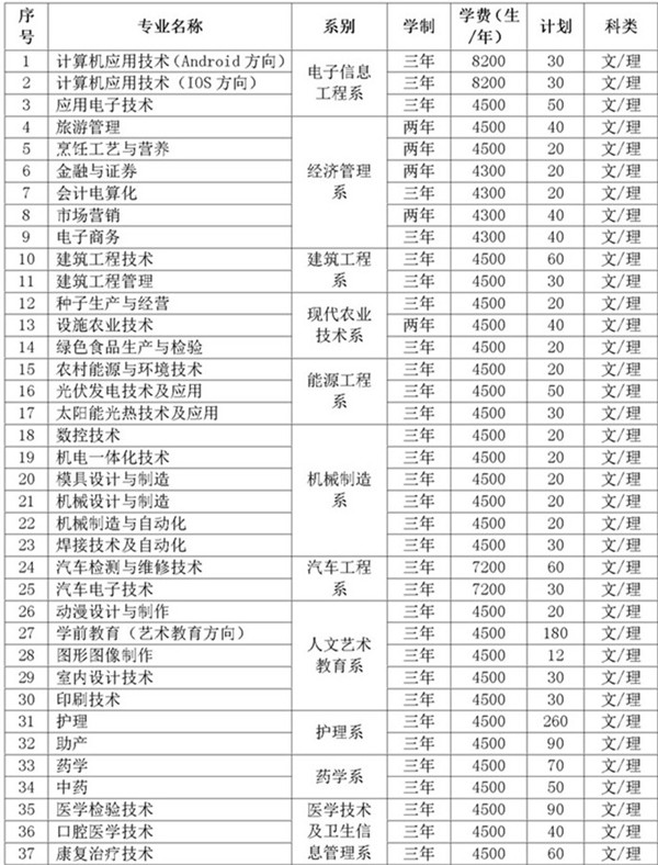 武威職業(yè)學(xué)院2016年招生計(jì)劃表