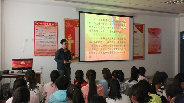 本次入學(xué)教育由系輔導(dǎo)員楊建美老師主持。系主任蔡柱山對(duì)新生提出了“兩個(gè)轉(zhuǎn)變,一個(gè)準(zhǔn)備”的要求,即學(xué)習(xí)方式的轉(zhuǎn)變,生活方式的轉(zhuǎn)變及早樹立目標(biāo),為自己的人生早作準(zhǔn)備;教學(xué)秘書王建強(qiáng)老師就教學(xué)管理、專業(yè)課程設(shè)置等相關(guān)方面的內(nèi)容作了講解;楊建美老師通過(guò)多媒體給新生介紹了武威的風(fēng)土人情、學(xué)院及藥學(xué)系的概況,同時(shí)強(qiáng)調(diào)了在常規(guī)管理、紀(jì)律要求、安全教育、文明禮儀等方面的問(wèn)題進(jìn)行詳細(xì)的講解;團(tuán)總支書記陳輝生老師就黨、團(tuán)組織建設(shè)進(jìn)行了介紹。