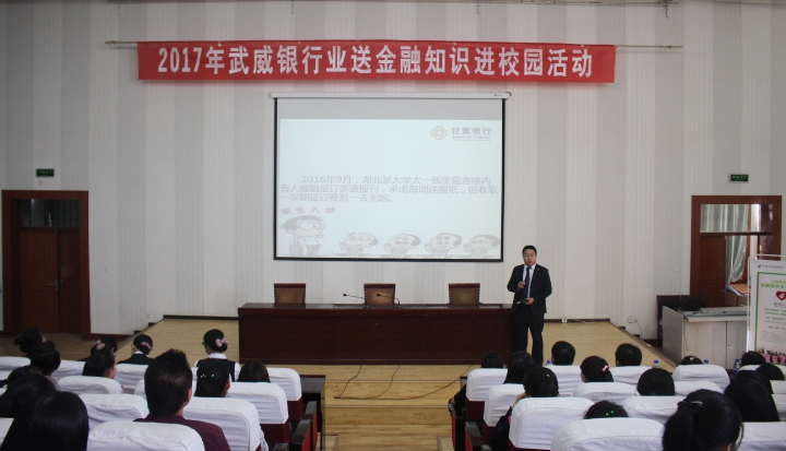 為幫助同學(xué)們了解和掌握銀行業(yè)消費常識,增強科學(xué)合理使用銀行產(chǎn)品和服務(wù)的能力,提升同學(xué)們對金融業(yè)務(wù)的風(fēng)險防范和識別能力,5月11日下午,經(jīng)濟管理系與甘肅銀行武威分行、郵政儲蓄銀行武威市分行在學(xué)院正德廳聯(lián)合開展了“銀行業(yè)送金融知識進校園”宣講活動。經(jīng)濟管理系會計電算化、證券與期貨專業(yè)的350余名同學(xué)參加了此次宣講會。