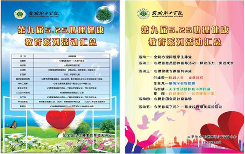 為貫徹落實(shí)習(xí)近平總書記在全國(guó)高校思想政治工作會(huì)議上的講話和教育部《關(guān)于加強(qiáng)普通高校大學(xué)生心理健康教育工作的意見(jiàn)》等文件精神,迎接“5·25”全國(guó)大學(xué)生心理健康日,提高我院學(xué)生心理健康水平,展現(xiàn)我院學(xué)生積極向上的精神風(fēng)貌。學(xué)生工作處于5月20日至6月20日開(kāi)展了第九屆“5·25”心理健康宣傳月系列活動(dòng)。
