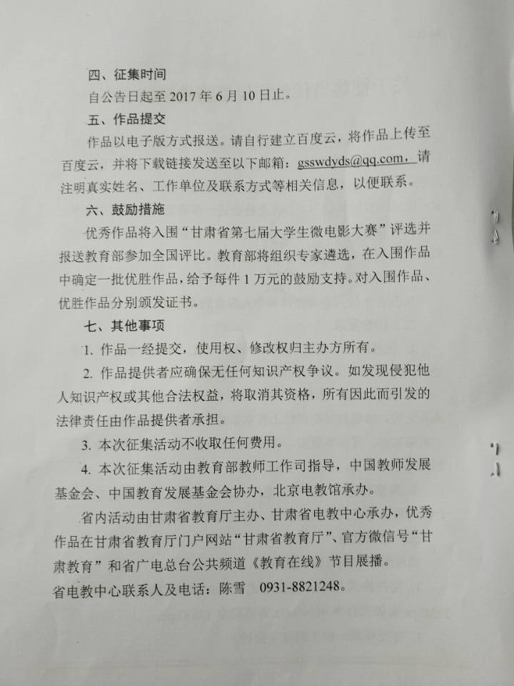 現(xiàn)將省教育廳關(guān)于協(xié)助做好“征集當(dāng)代教師風(fēng)采微視頻”有關(guān)工作的通知上傳至學(xué)院網(wǎng)站,請你們認(rèn)真組織教職工踴躍參與此項工作,有參加意向的教職工請根據(jù)要求做好微視頻于6月8日前報送至組織人事處。