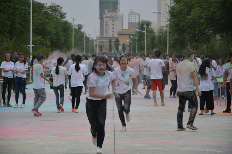 下午三點,學院團委宋文龍老師在啟動儀式上做了熱情洋溢的致辭,團學干部帶領參賽選手開啟了本次活動的奔跑。本次活動由“趣味沖關(guān)”“彩虹跑”“熒光夜跑”三個環(huán)節(jié)組成。“趣味沖關(guān)”由一系列小游戲組成,需要大家齊心協(xié)力、互相配合完成,同學們滿懷激情,在奔跑的同時體驗著合作的趣味與快樂。掌聲、笑聲、加油聲此起彼伏,選手與觀眾互動交流,整個過程充滿了愉悅的氣氛。下午五點開啟了整個活動中最精彩的“彩虹跑”,同學們手捧玉米粉在慢跑中相互揮灑,多彩的玉米粉在他們身上留下了青春的印記。隨著夜幕降臨,精彩的“熒光夜跑”活動隨之開始,同學們手帶熒光環(huán),舞動熒光棒,在輪滑社成員的帶領下繞著校園跑動。熒光點綴著夜色,歡快的音樂、青春的聲音充斥著整個校園?;顒咏Y(jié)束后,在學院東門小廣場舉行了自由晚會,同學們圍成一圈,在主持人的帶動下做互動小游戲、自由演唱,一陣陣歡聲笑語回蕩在整個校園。