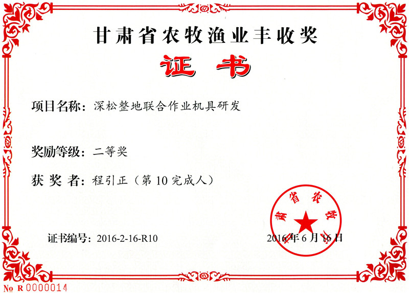 甘肅省農(nóng)牧漁業(yè)豐收獎(jiǎng)-深松整地聯(lián)合作業(yè)機(jī)具研發(fā)