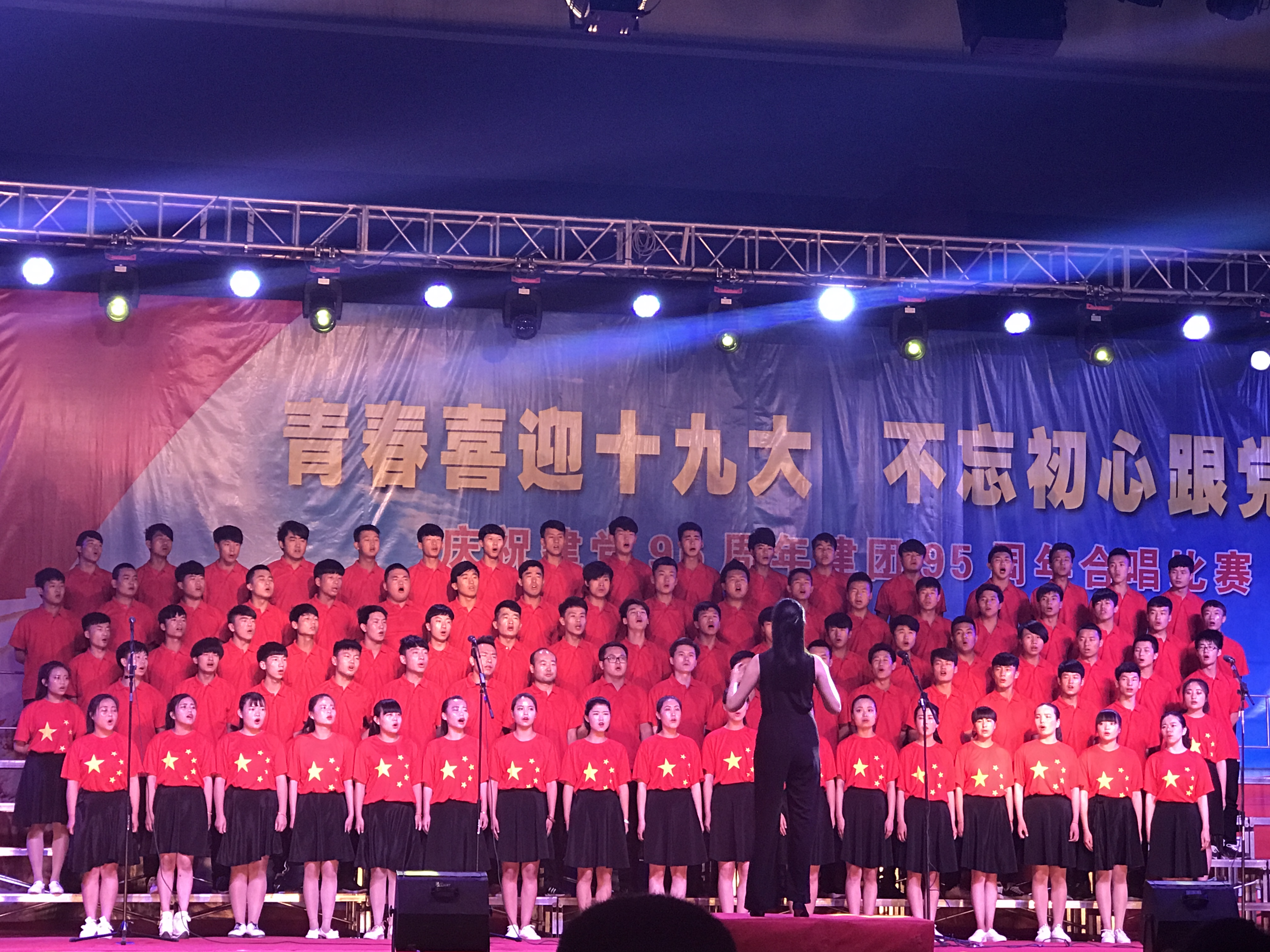 在持續(xù)半個(gè)月的合唱訓(xùn)練中,我系參加大合唱的90名同學(xué)和6位老師充分的準(zhǔn)備,以積極飽滿的態(tài)度投入到本次大合唱比賽的訓(xùn)練中,付出了大量的精力,放棄了許多休息時(shí)間,展現(xiàn)出了不怕吃苦,堅(jiān)持不懈,自強(qiáng)自信的精神。比賽中,隊(duì)員們齊聚在黨旗下,著裝整齊,精神飽滿,以高昂的熱情、嘹亮的嗓音唱出了對(duì)黨的擁戴,對(duì)未來的憧憬,贏得了評(píng)委及現(xiàn)場(chǎng)觀眾的熱烈掌聲。