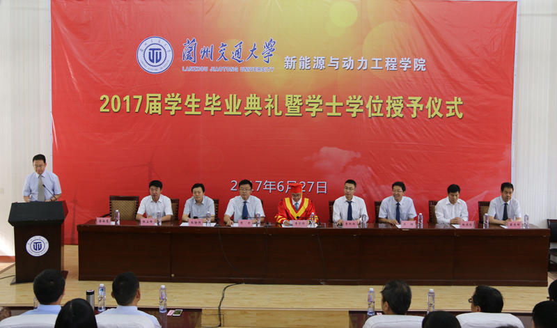 四載辛勤耕耘,一旦收獲碩果。6月27日上午,新能源與動(dòng)力工程學(xué)院2017屆畢業(yè)典禮暨學(xué)位授予儀式在尚德樓正德廳隆重舉行。蘭州交通大學(xué)黨委副書記、常務(wù)副校長(zhǎng)李引珍,黨委(校長(zhǎng))辦公室副主任李紅紅、學(xué)生處處長(zhǎng)貢力、招生就業(yè)處處長(zhǎng)蘇程、教務(wù)處副處長(zhǎng)王海涌、財(cái)務(wù)處副處長(zhǎng)楊在忠、校團(tuán)委書記張立峰,武威職業(yè)學(xué)院副院長(zhǎng)翟存祥,新能源與動(dòng)力工程學(xué)院院長(zhǎng)董海鷹、副院長(zhǎng)姚翔飛、副院長(zhǎng)湯旻安出席了典禮。新能源與動(dòng)力工程學(xué)院256名畢業(yè)生及師生代表共同參加了典禮。典禮由新能源與動(dòng)力工程學(xué)院院長(zhǎng)董海鷹主持。